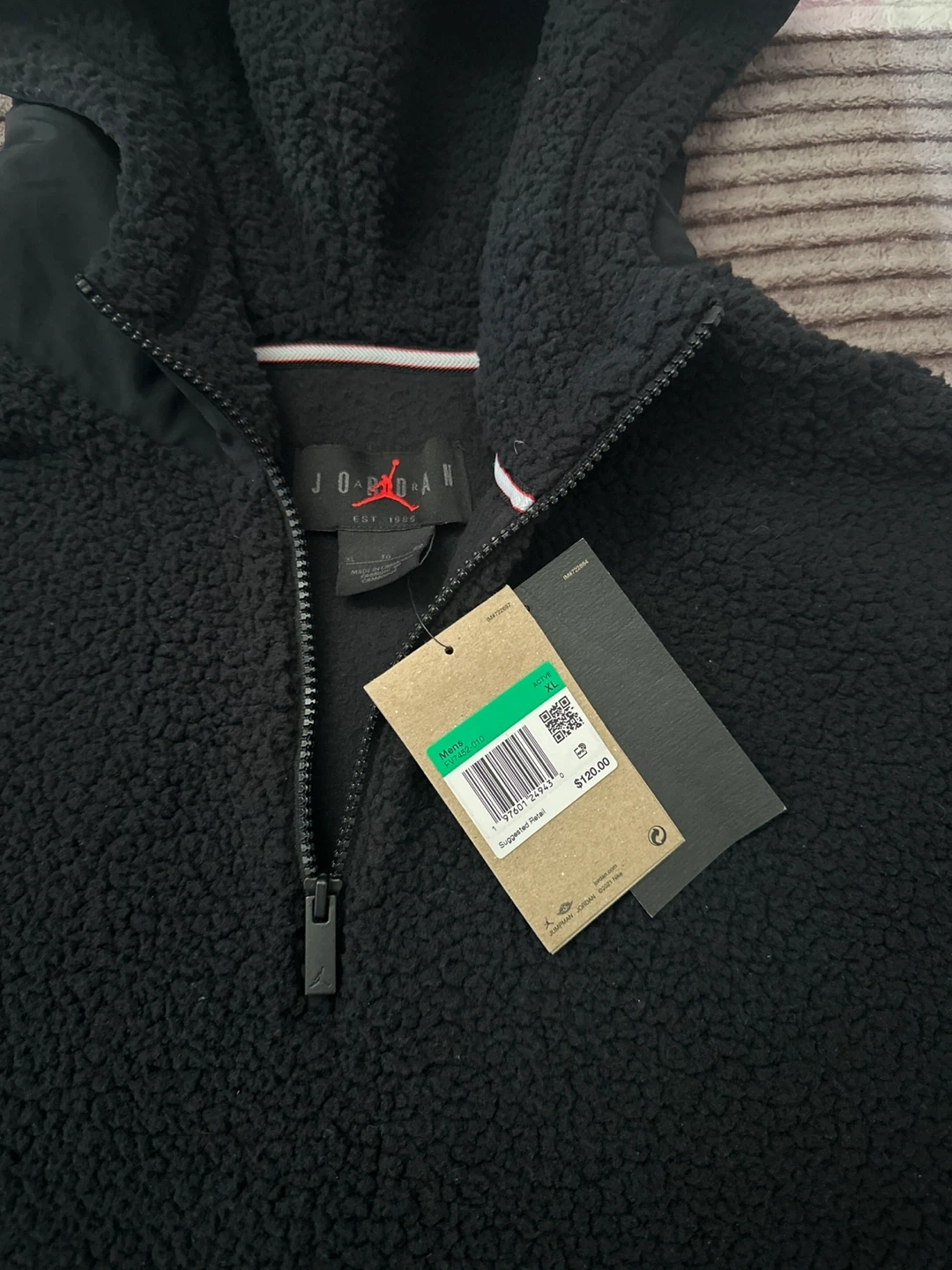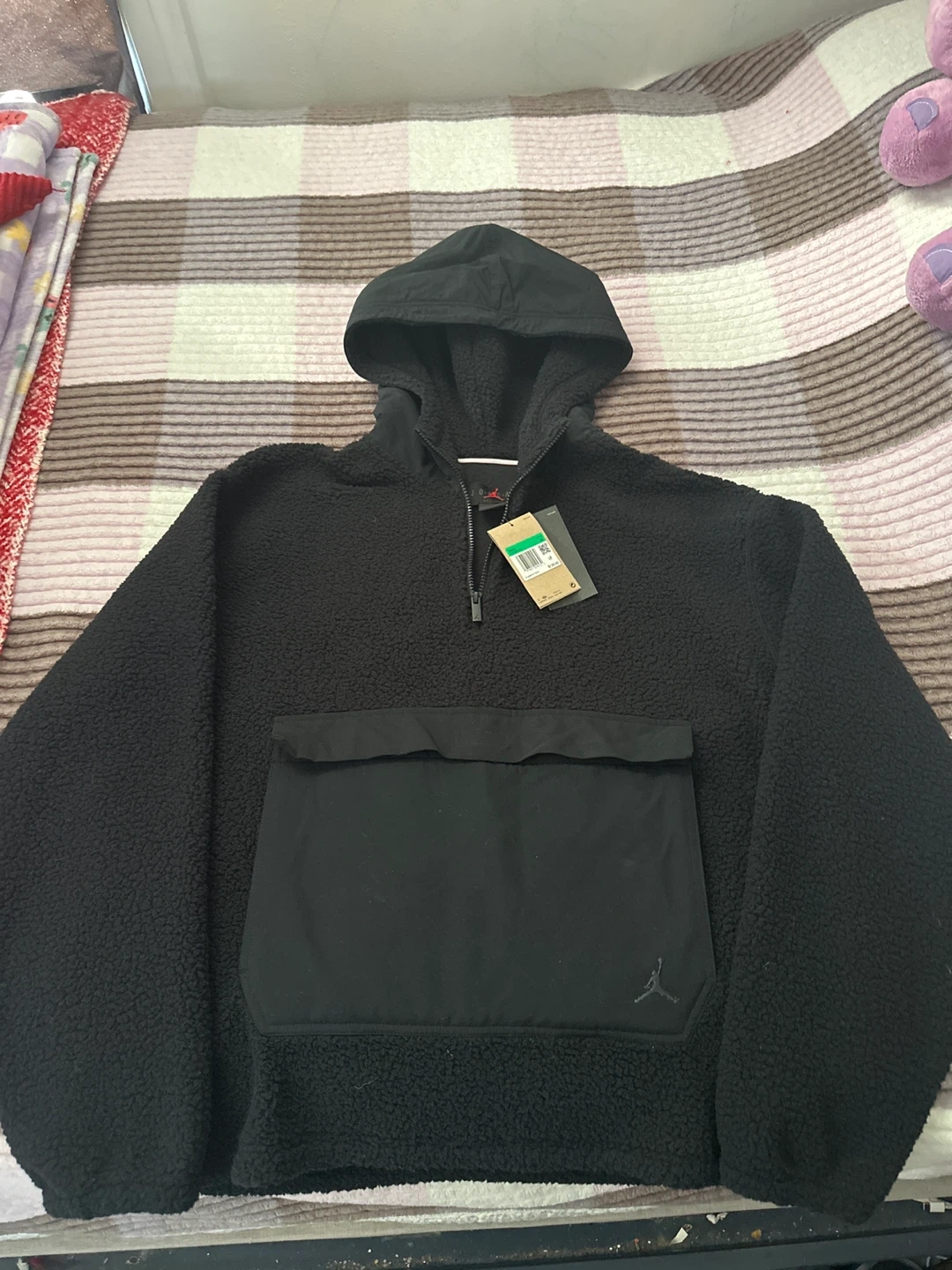 Selling a brand new with tags Jordan black fleece hoodie in size XL! This cozy hoodie features a convenient front pocket and a stylish design. Originally bought for $120.