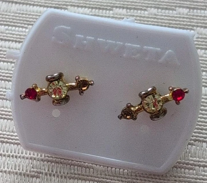 Cute pair of stud earrings featuring red and yellow stones. They come in their original packaging!