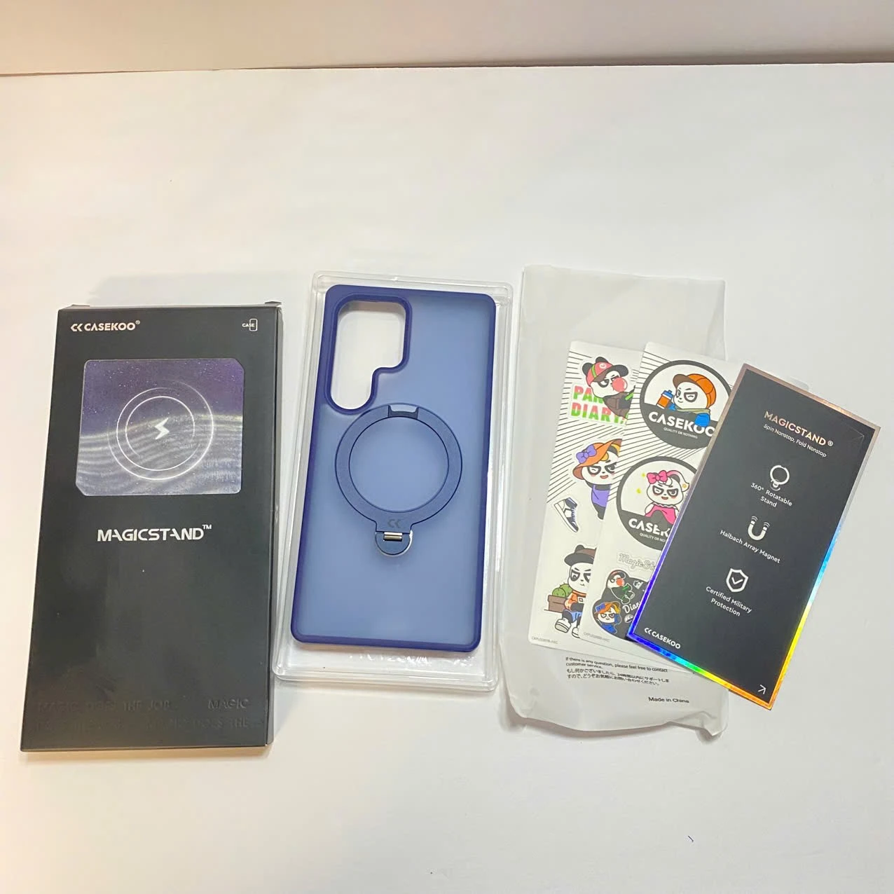 This Casekoo Magicstand phone case is for a Samsung Galaxy S25 Ultra. It comes with a patented 360° spin stand for a better grip. It's a nice blue colour and is in great condition. The box is included!