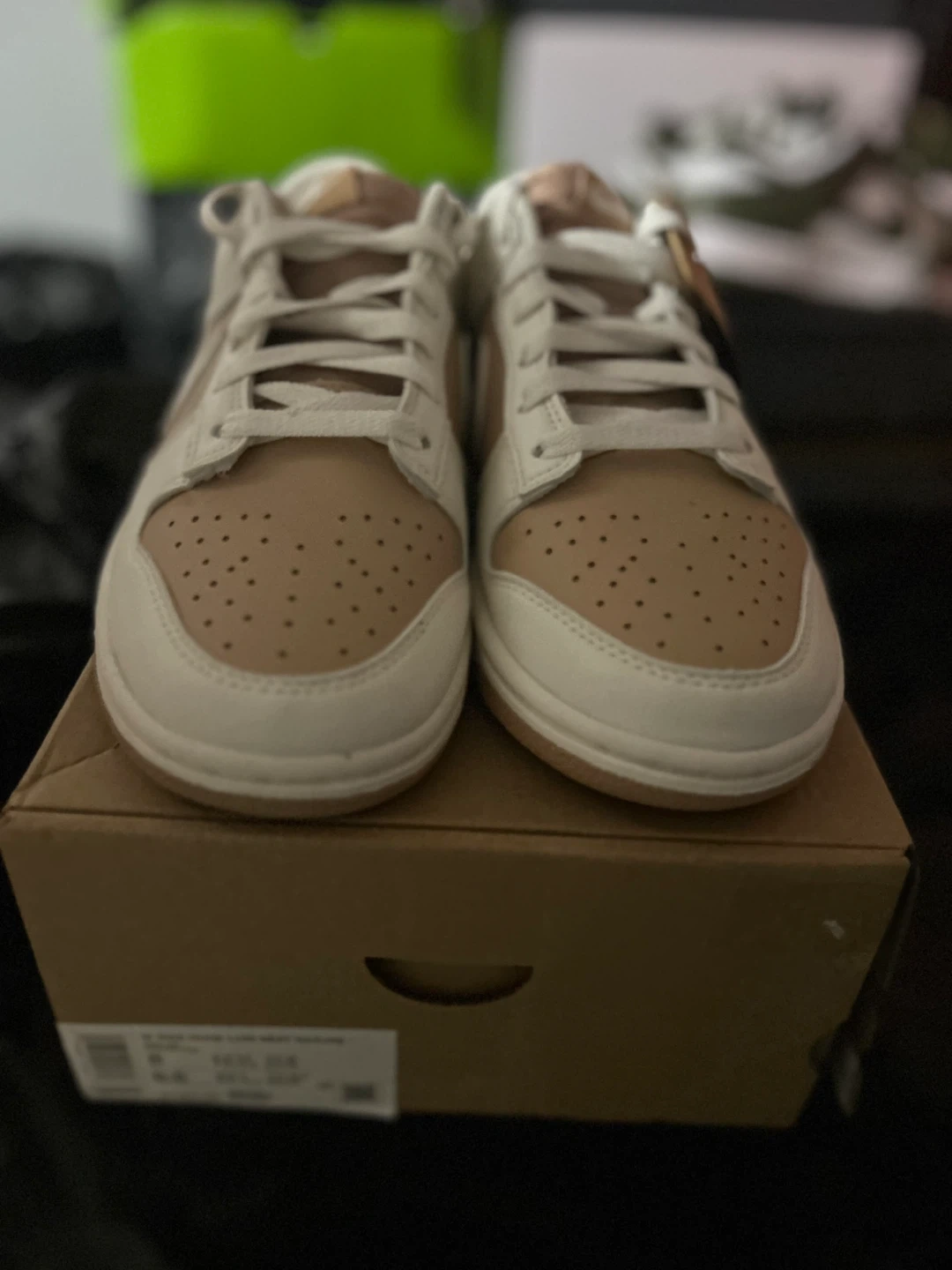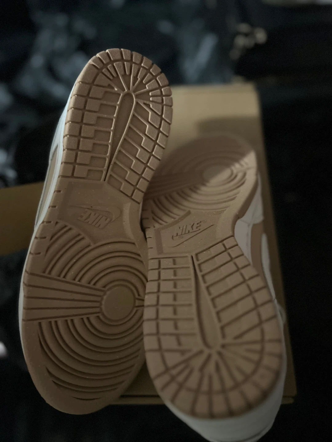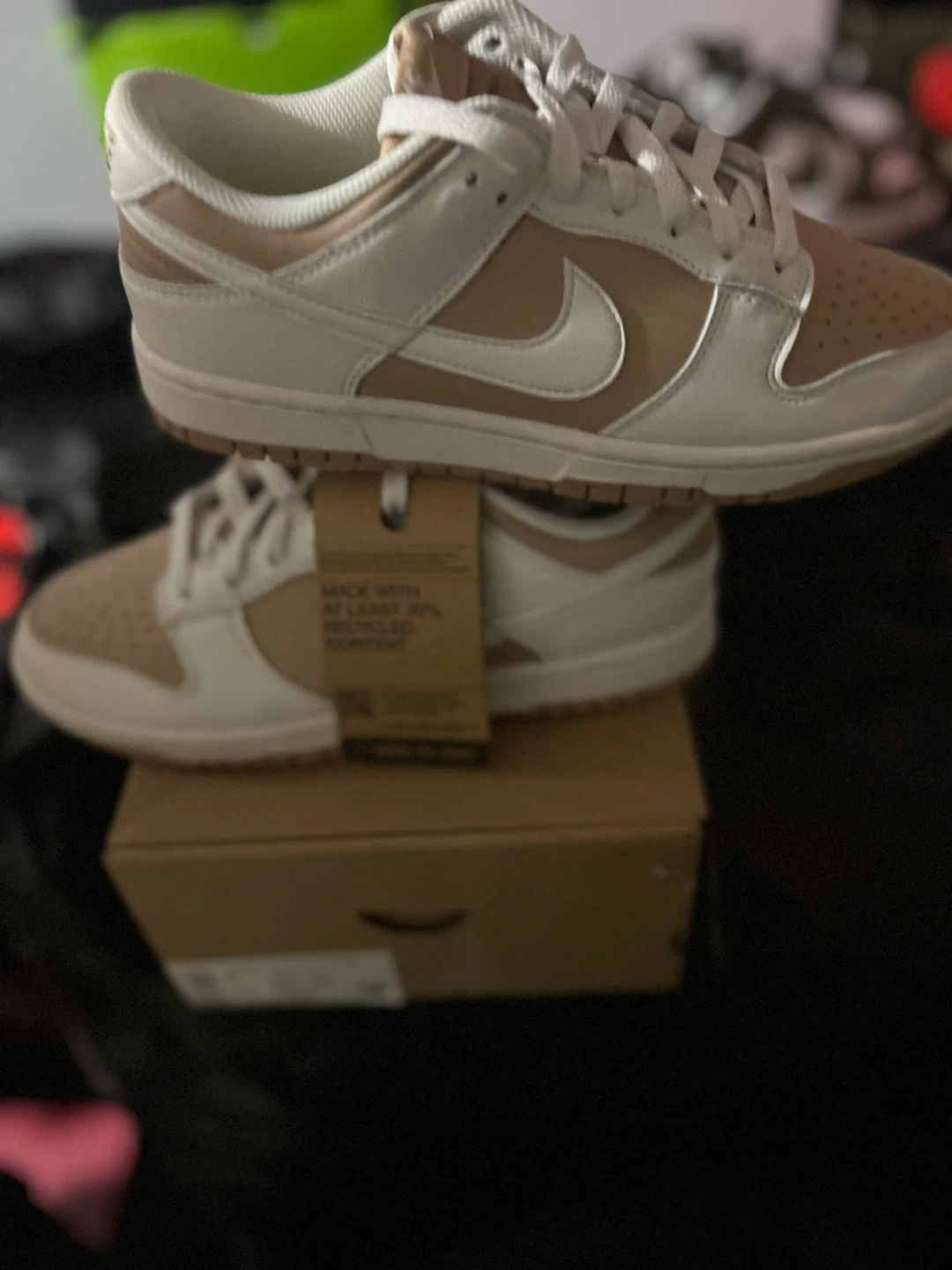 Selling a pair of Nike Dunk Low Fossil Stone women's shoes in size 8. They are in excellent condition and come with the original box!