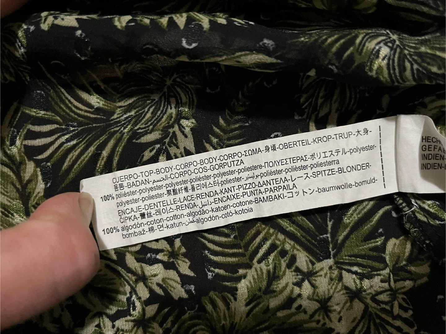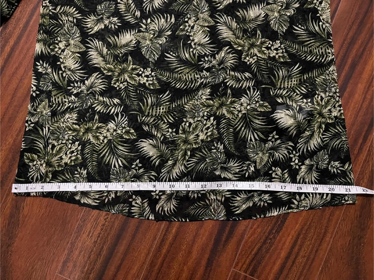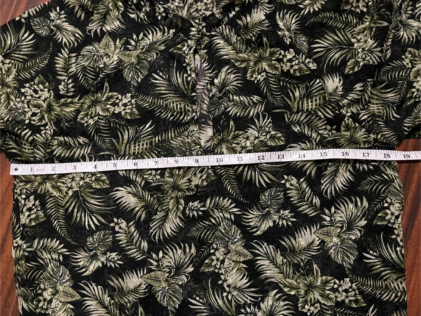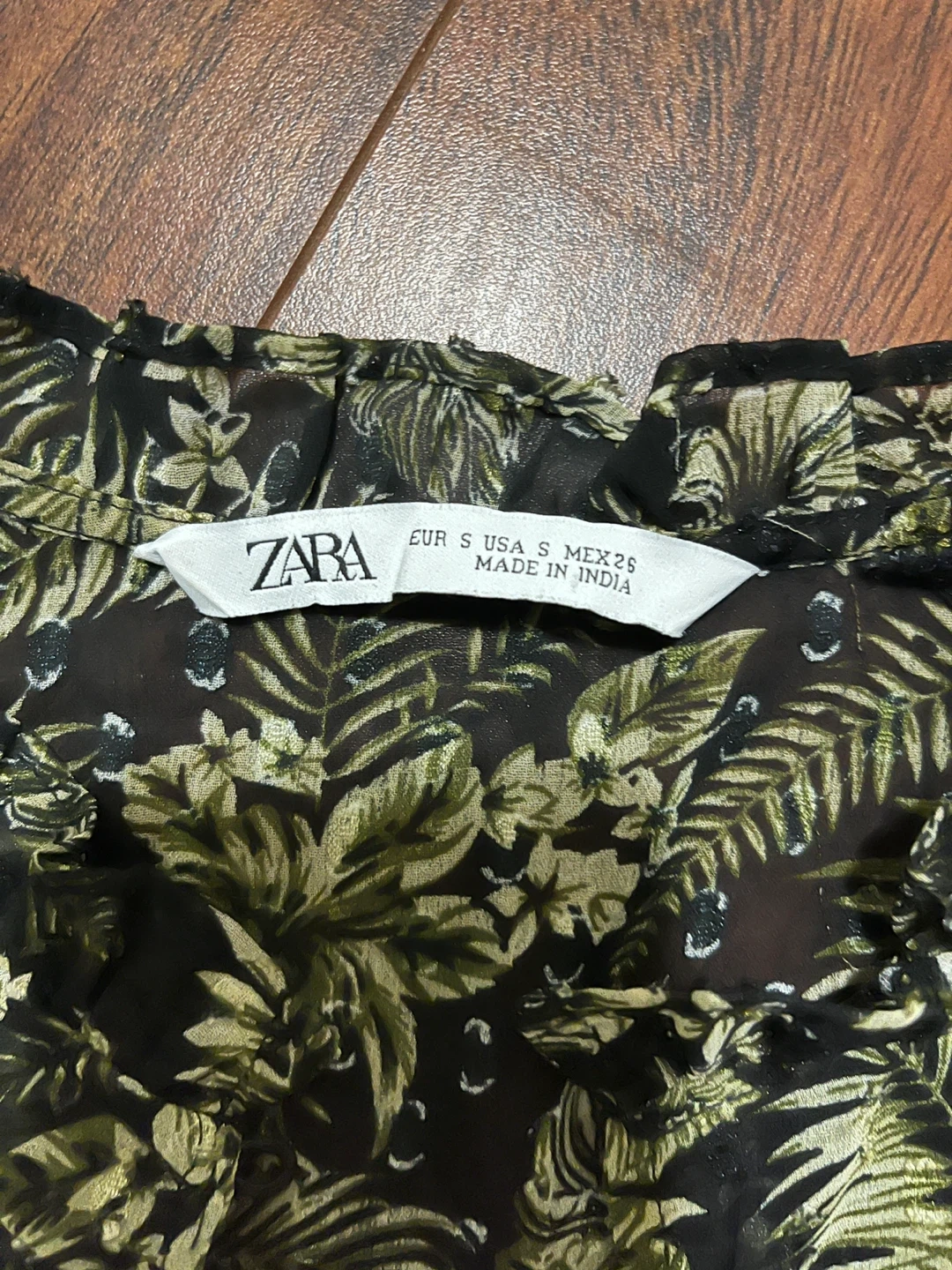 Zara women’s small balloon sleeve leaf print blouse, black green