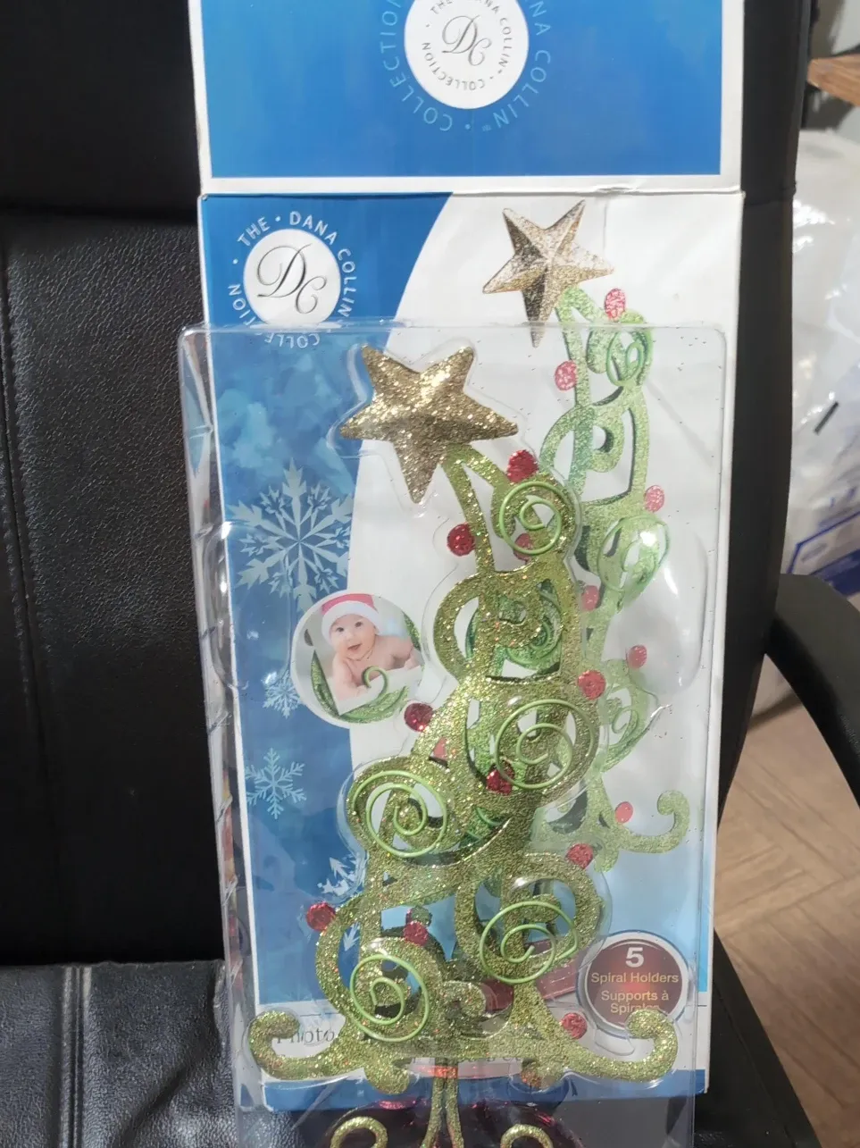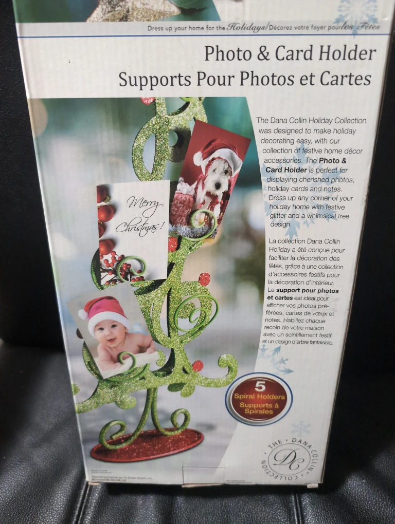 Selling a brand new Dana Collin photo and card holder! It's a festive way to display your favourite photos or cards. The holder features a spiral design with 5 spiral holders. It comes in its original box