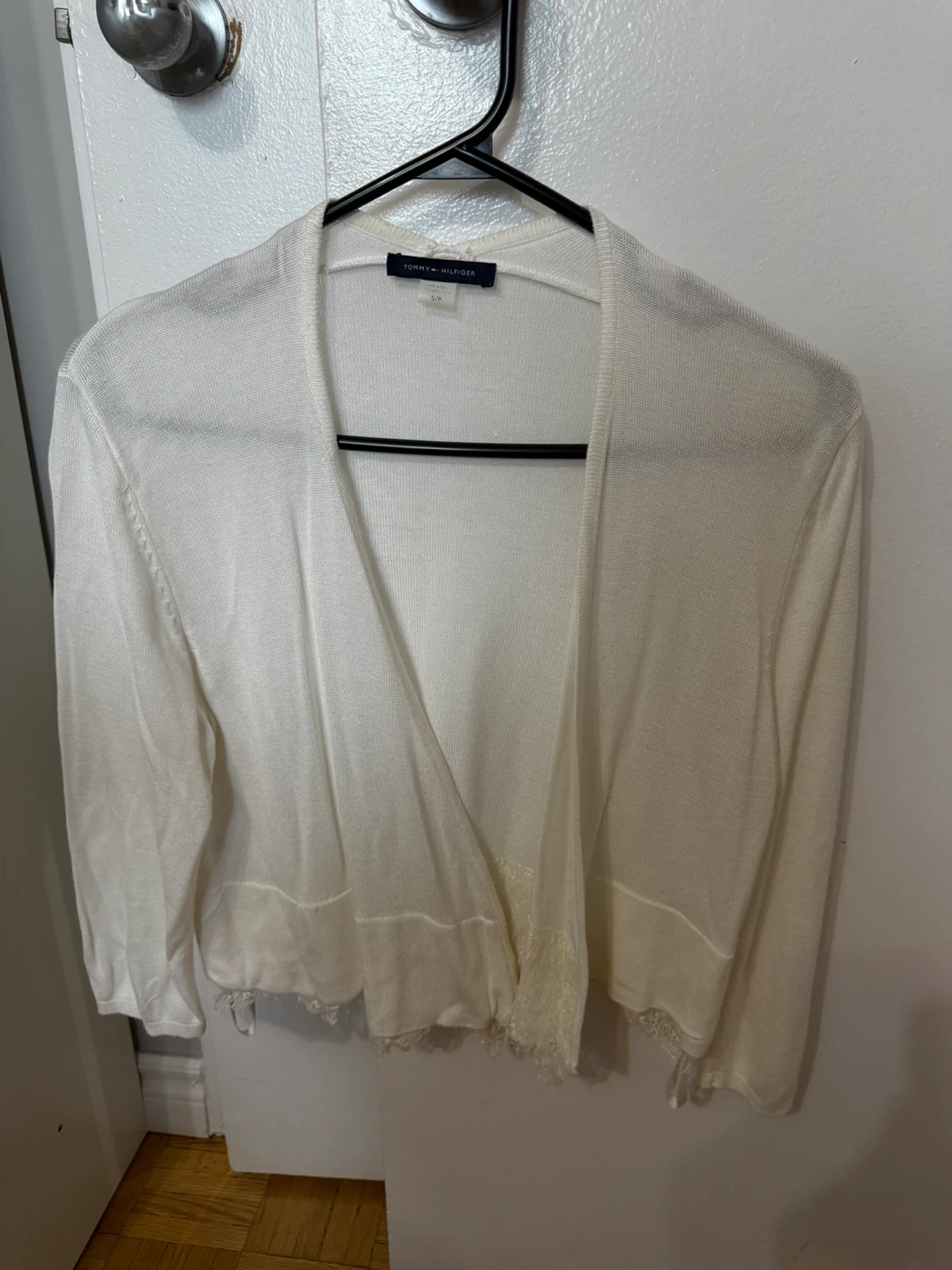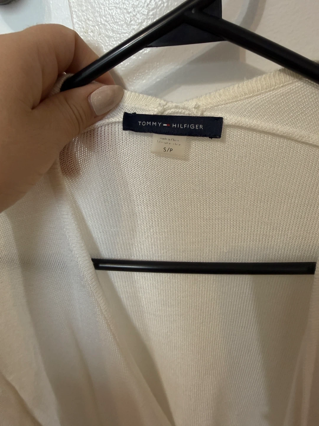 Buy & SellTommy Hilfiger White Cardigan - Size S/PTommy Hilfiger White Cardigan - Size S/P$7Tommy Hilfiger white cardigan, size S/P. The shell is made of 100% Rayon, Combo 100% Nylon. It's in great condition and ready for a new wardrobe!SizeSBrandTommy HilfigerWHERE TO MEET1060 Caven streetView MapSELLERverifiedMarsyLakeview18913 reviews0 chats·0 favorites·9 viewsSEND CHAT TO SELLERHi Marsy! I’m interested in your listing.Hi Marsy! I’m interested in your listing.Get the Karrot app to chatSign In to chat