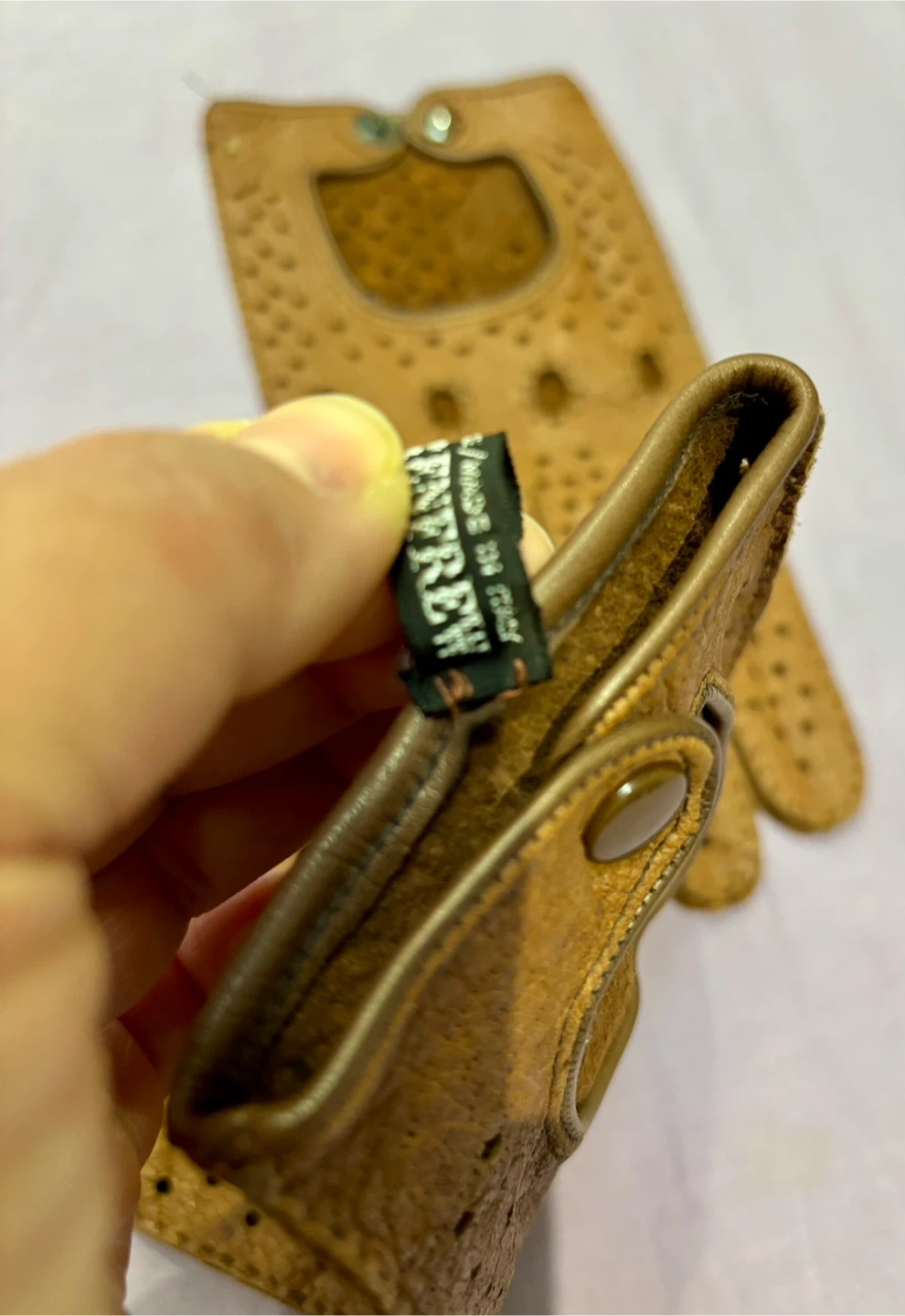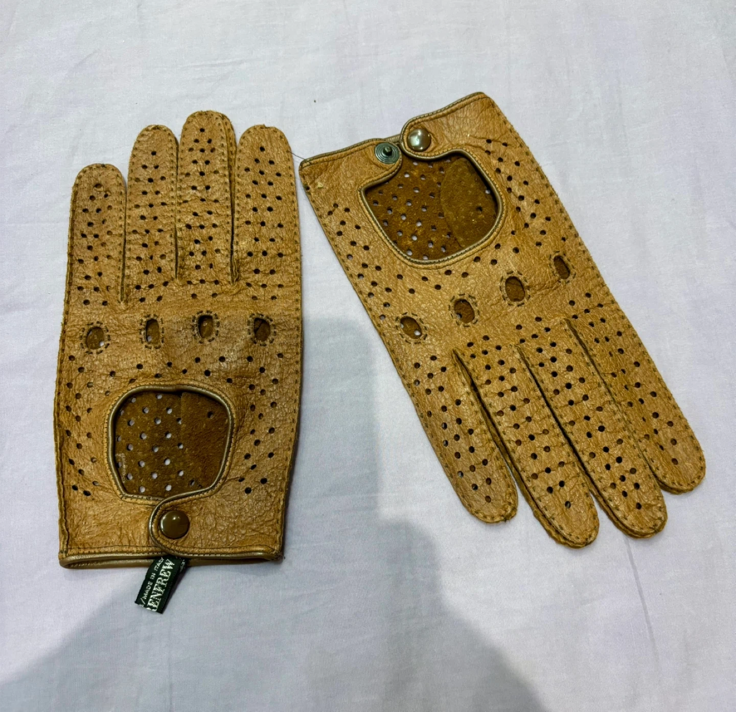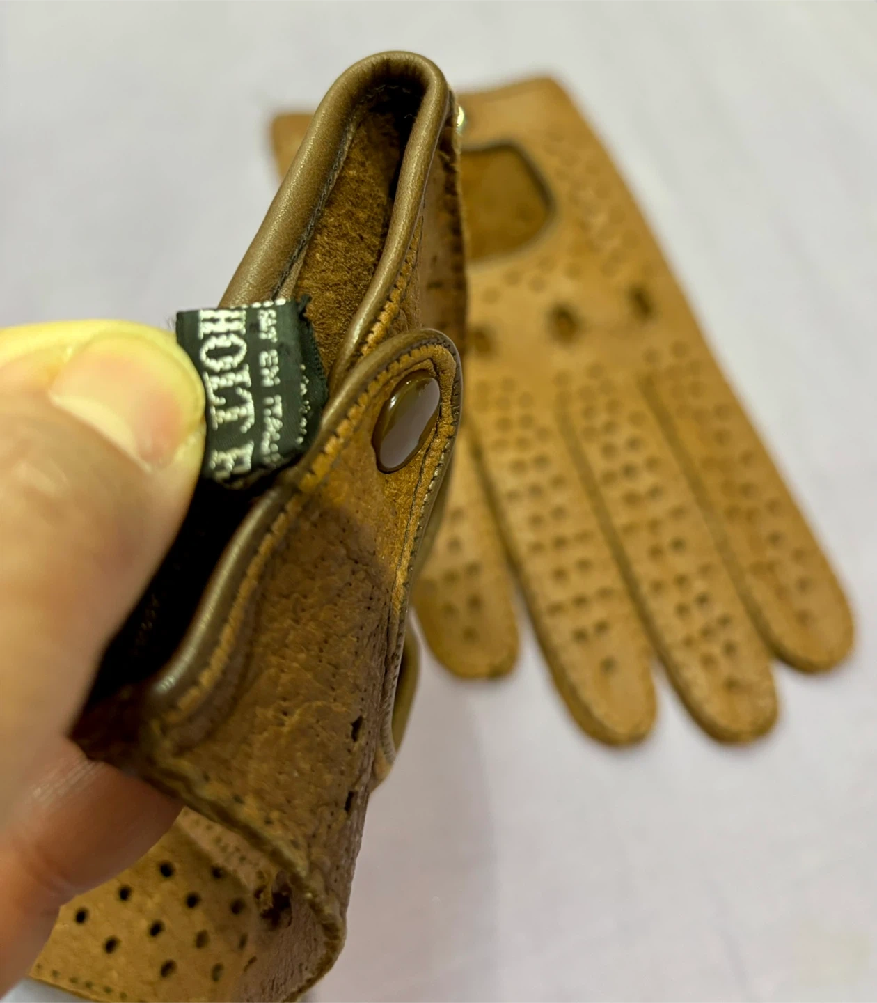 Selling a pair of Holt Renfrew leather driving gloves. They have a perforated design and snap closure. Great for adding a touch of vintage style to your driving experience! ( made in Italy )