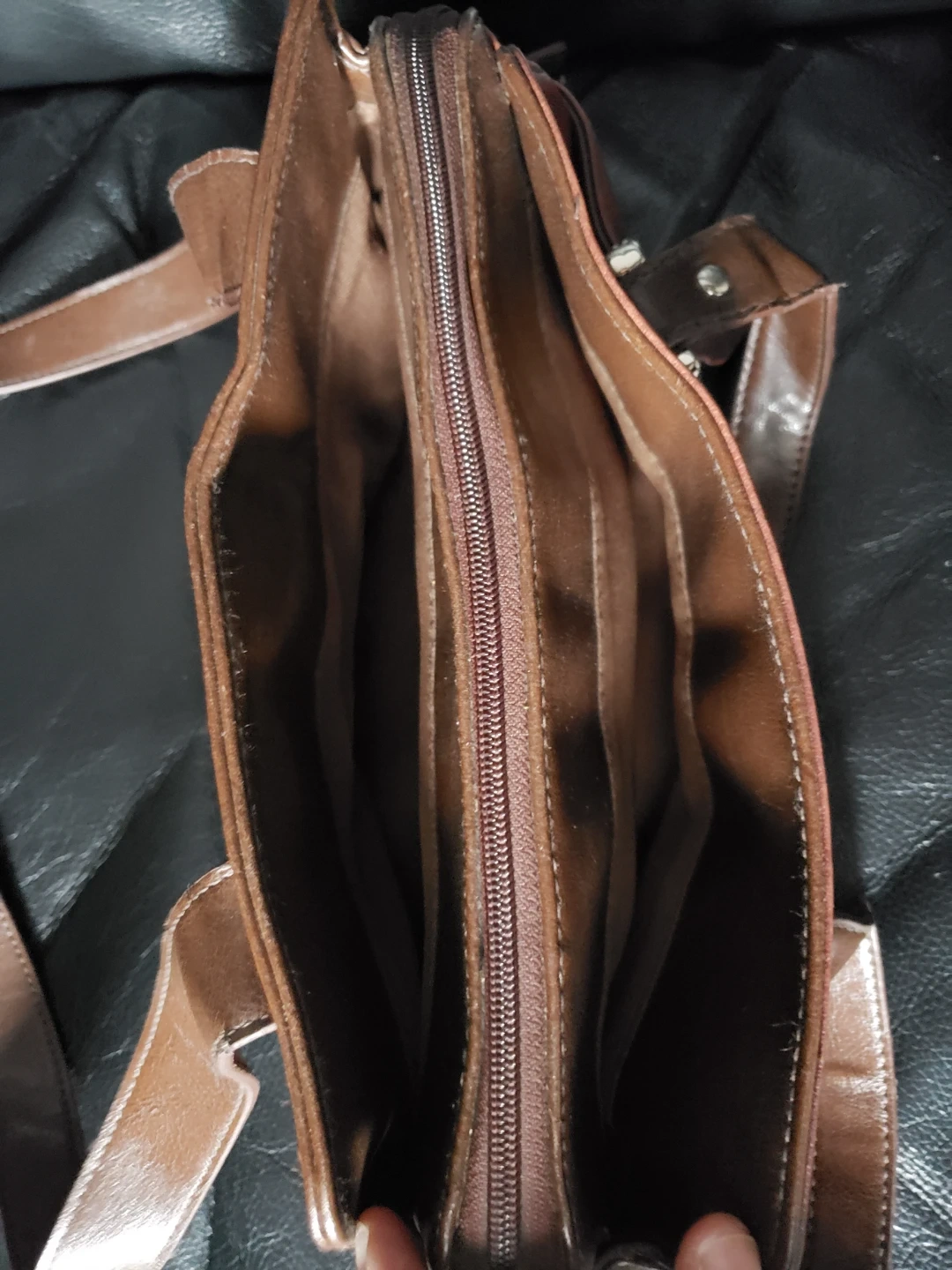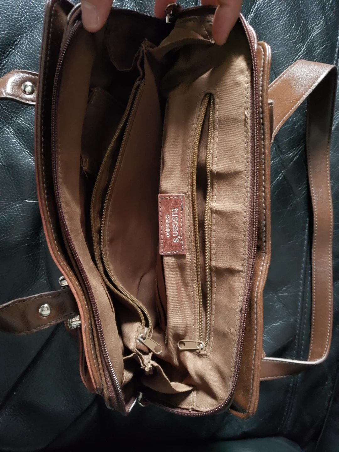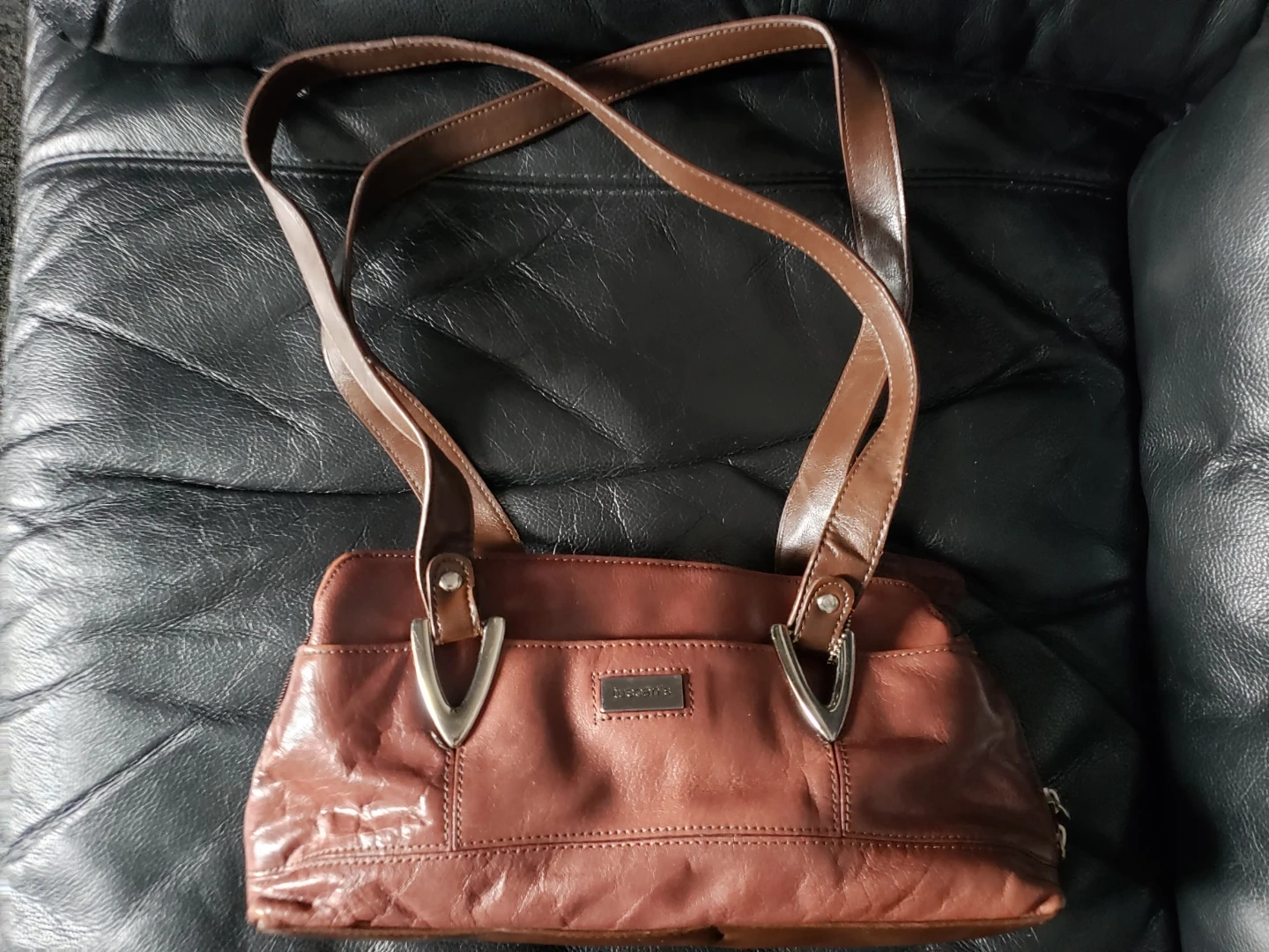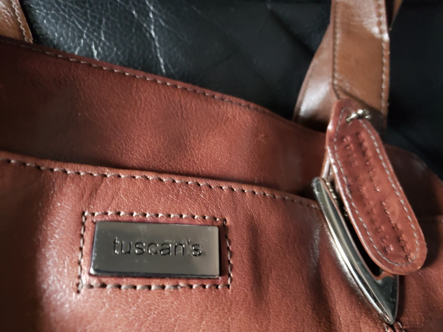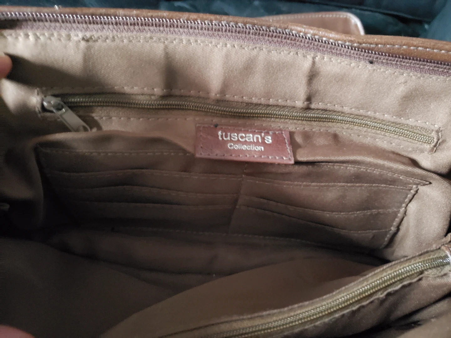 Here's a lovely brown genuine leather shoulder bag from Tuscan's Collection.