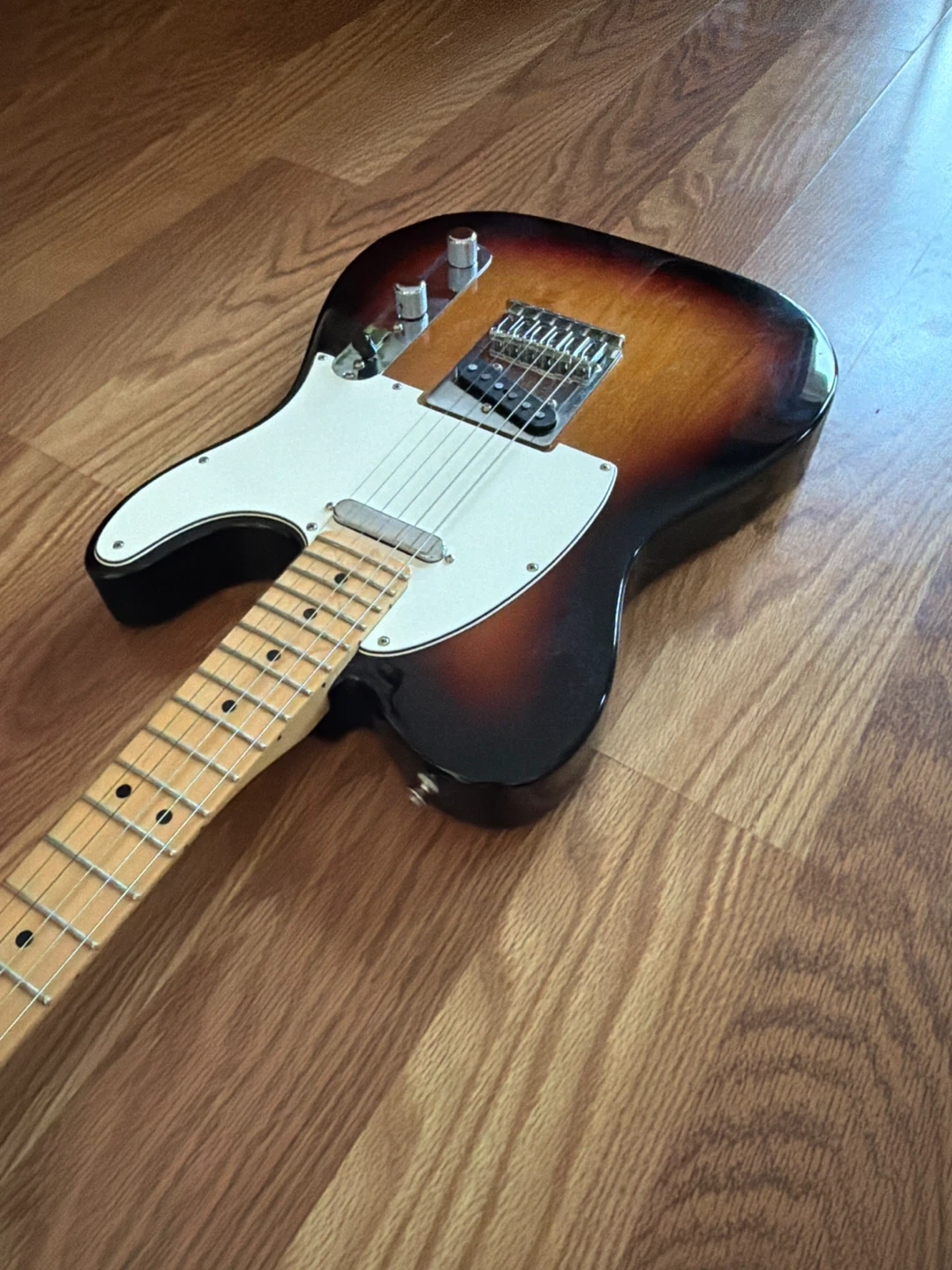 Selling a 2022 Fender Player Telecaster in excellent condition. Made in Mexico with a solid alder body and a comfortable Modern “C” maple neck. Features Player Series Alnico 5 single-coil pickups that deliver the classic Tele twang with clear highs and punchy mids. 6-saddle string-through-body bridge provides great tuning stability and sustain. Comes with strap, picks, FCT-2 tuner and guitar hanger mount!
