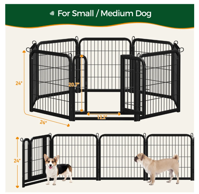 8 panel metal dog playpen with gate