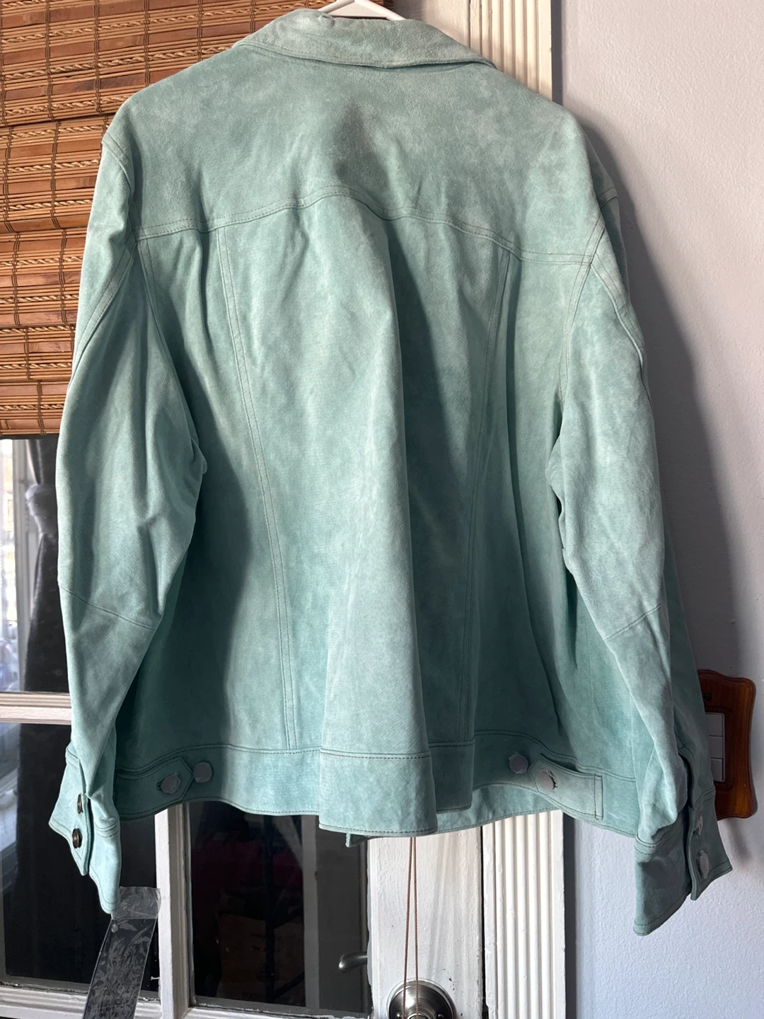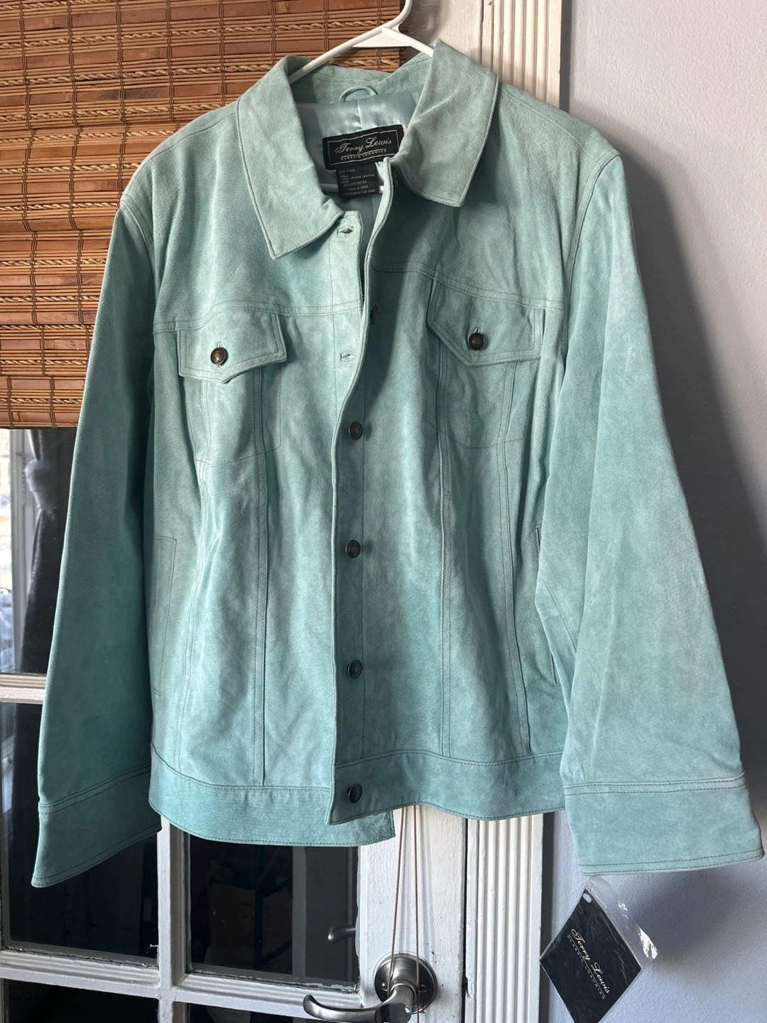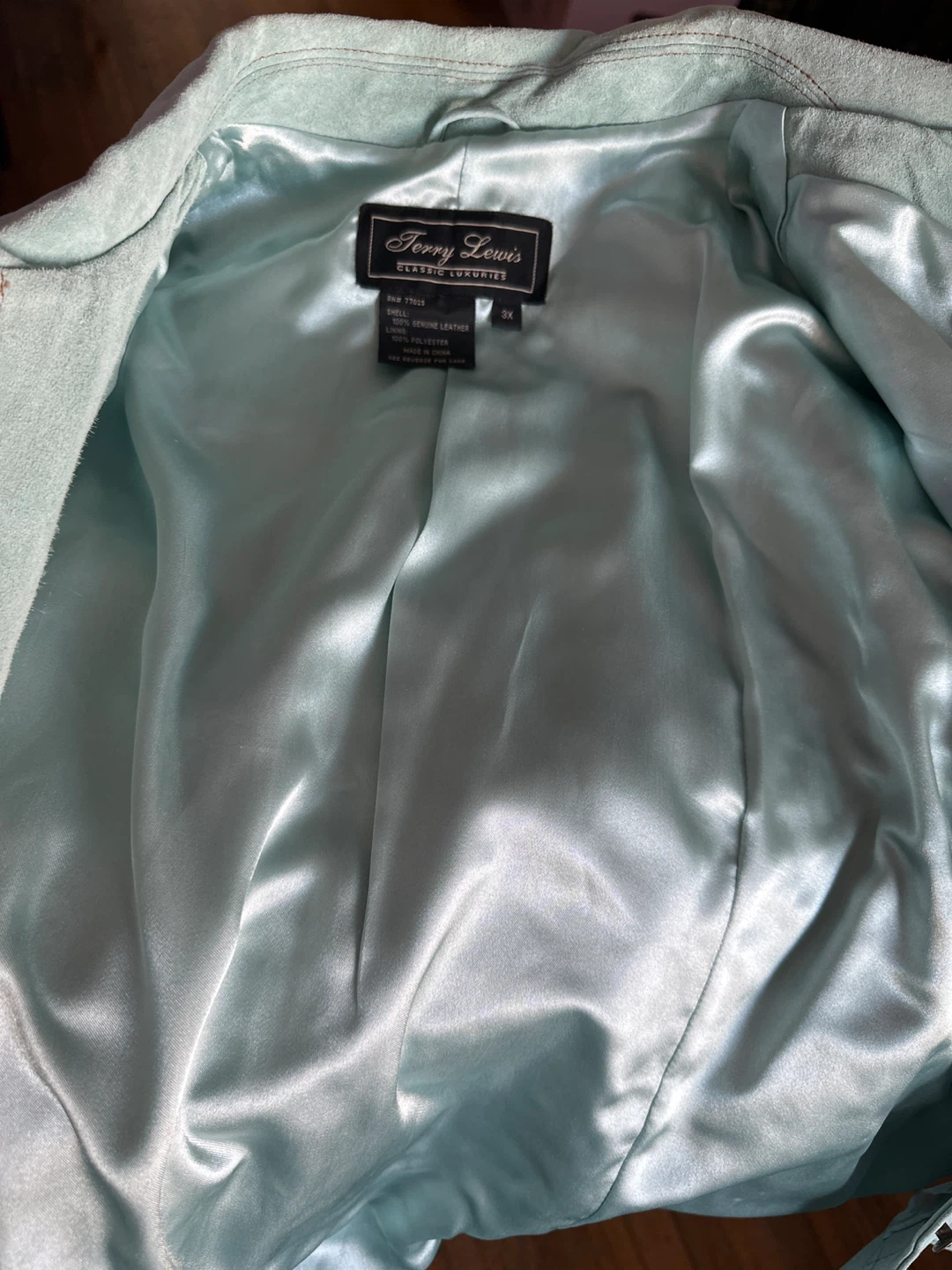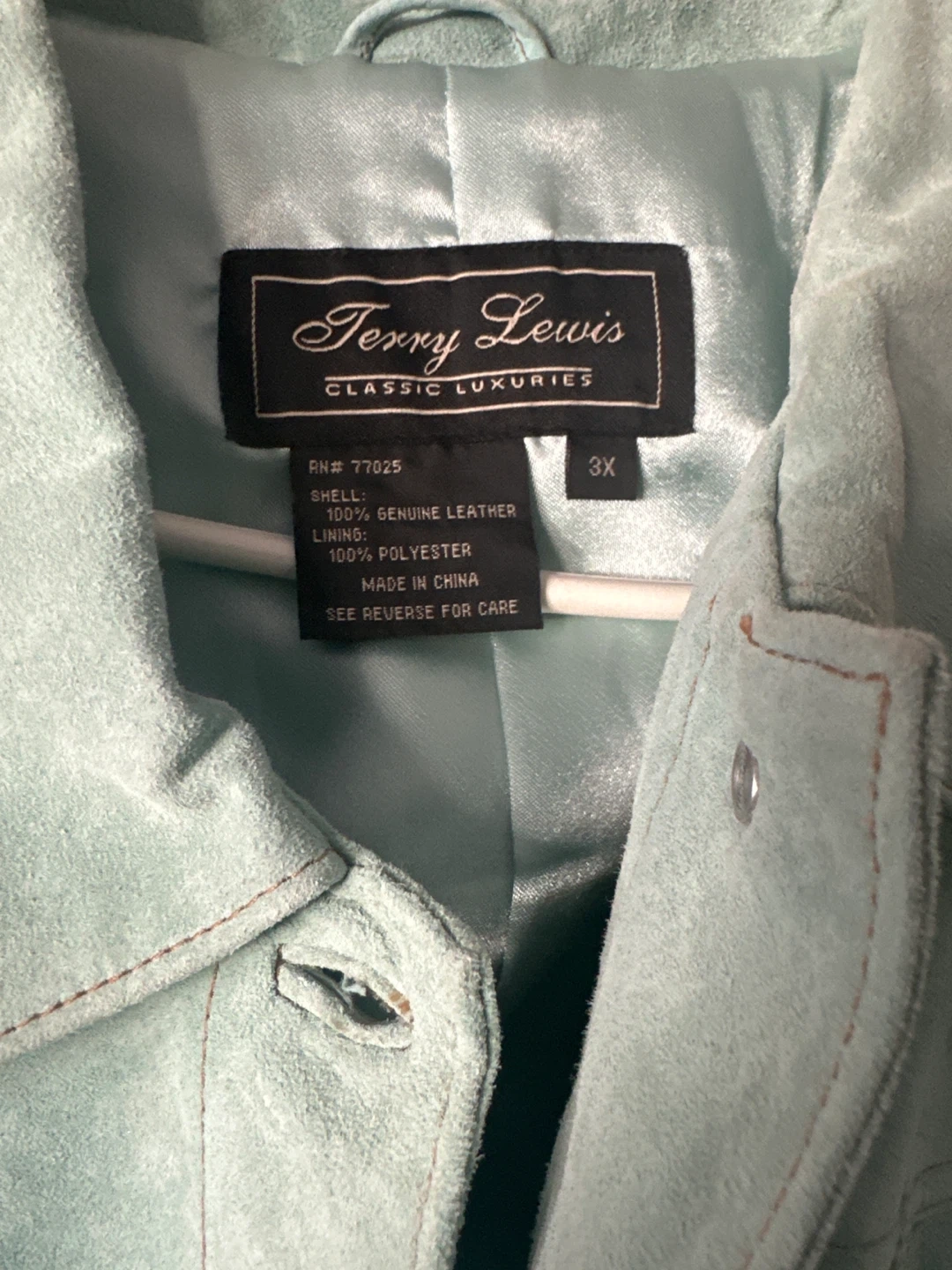Selling a Terry Lewis Classic Luxuries jacket in size 3X. It's a beautiful light blue color and made with 100% genuine leather shell and 100% polyester lining