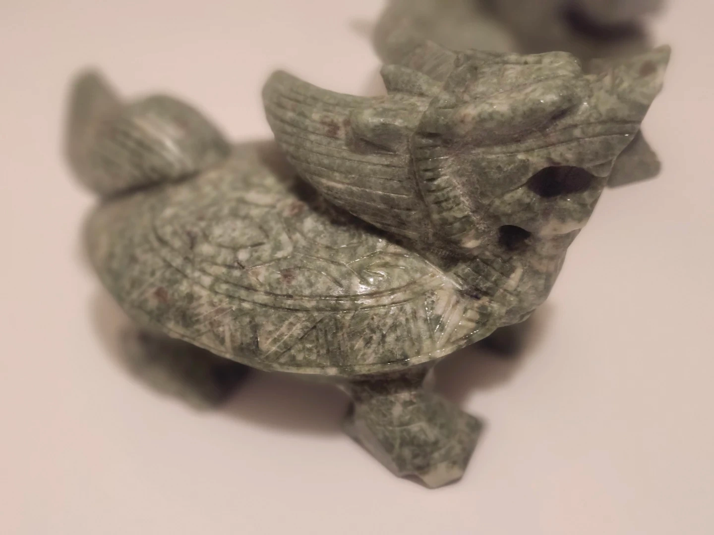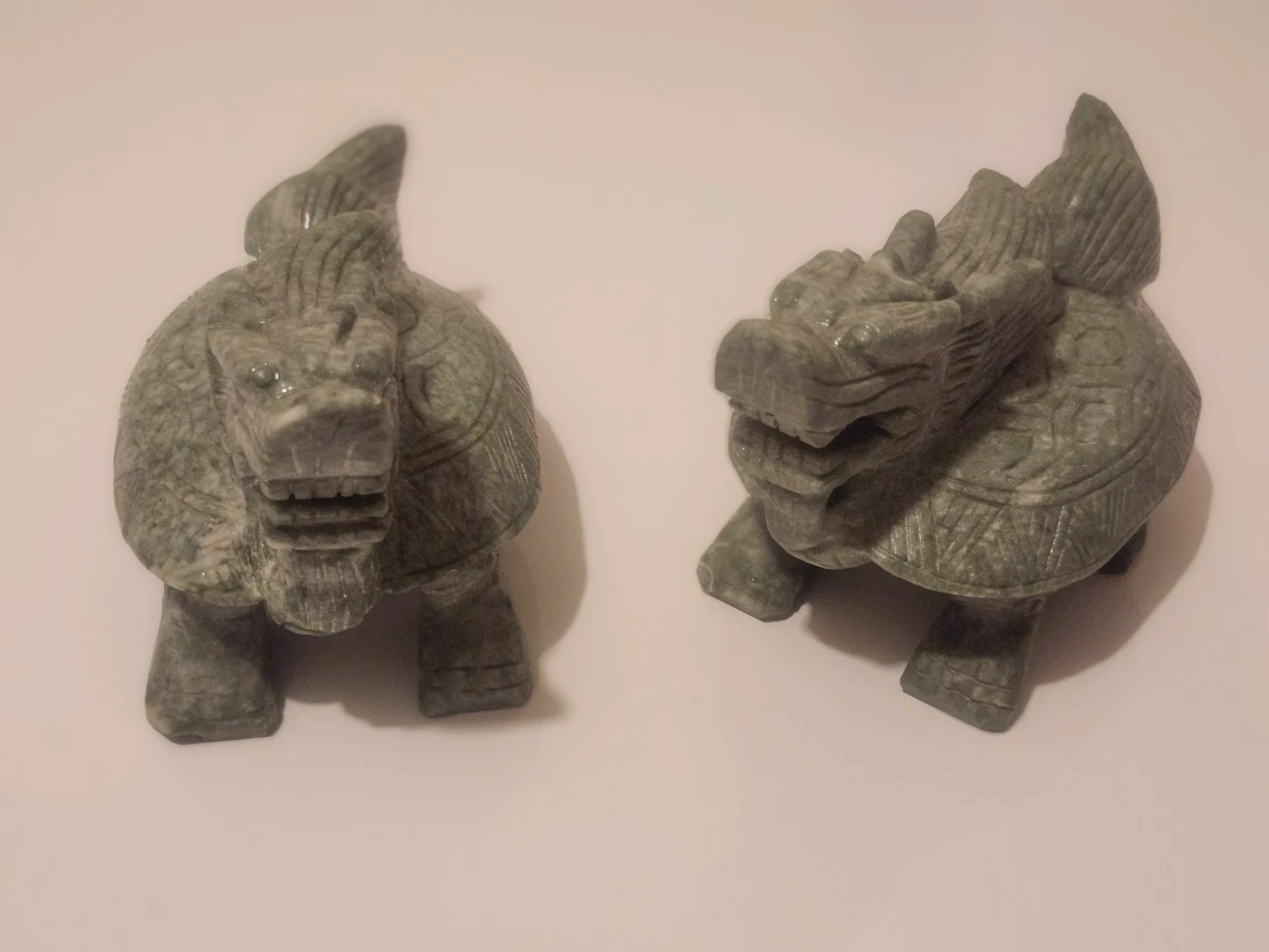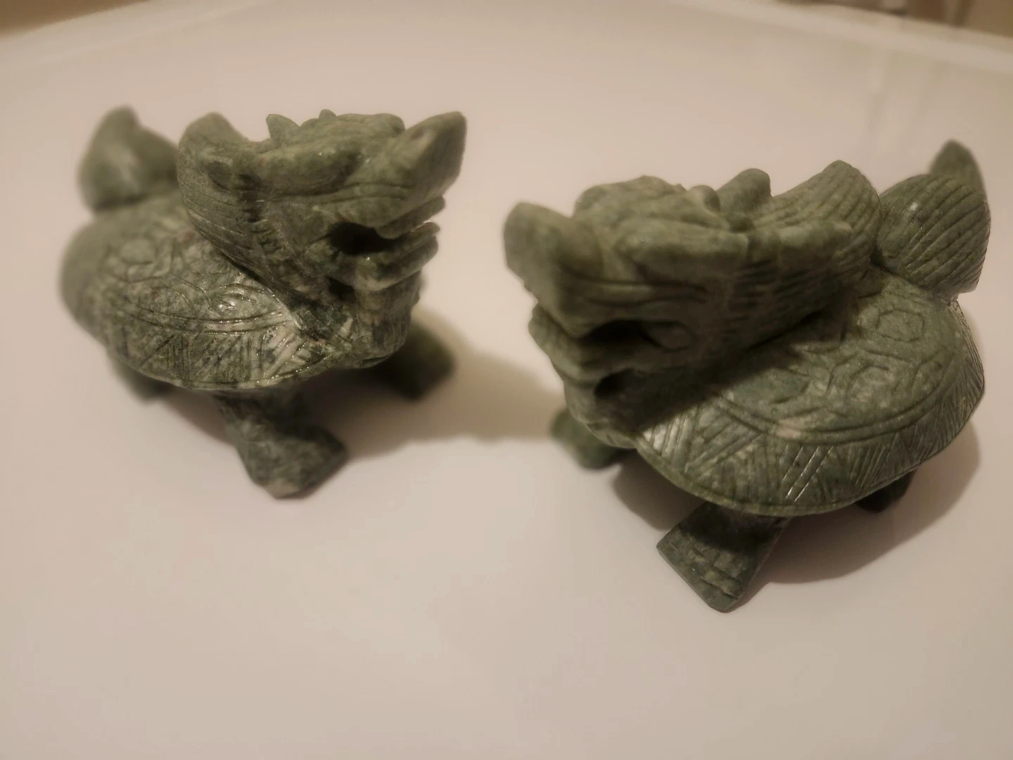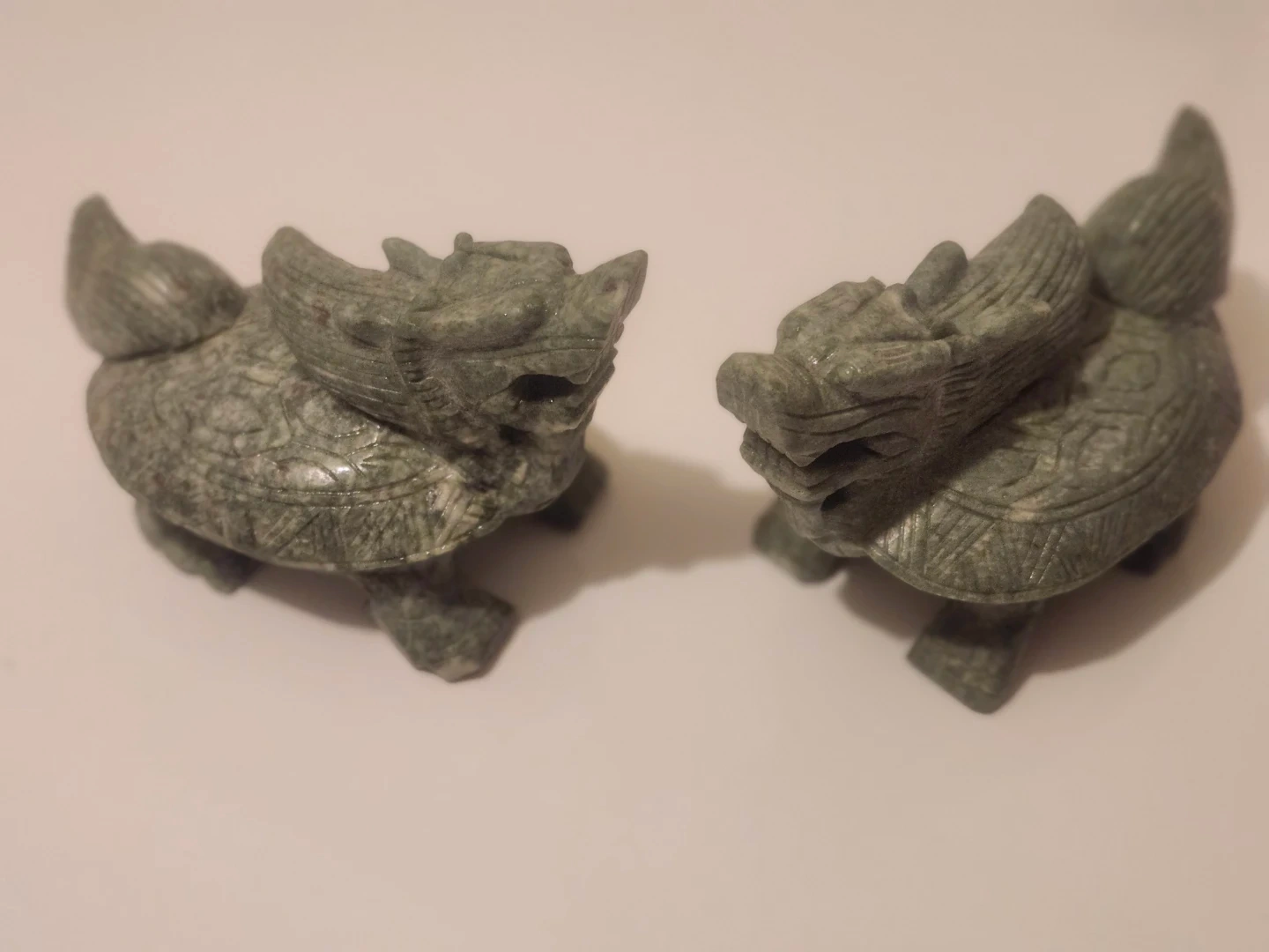 Here's a pair of stone turtle dragon statues! They're a unique decorative piece for your home or use for paper weight.