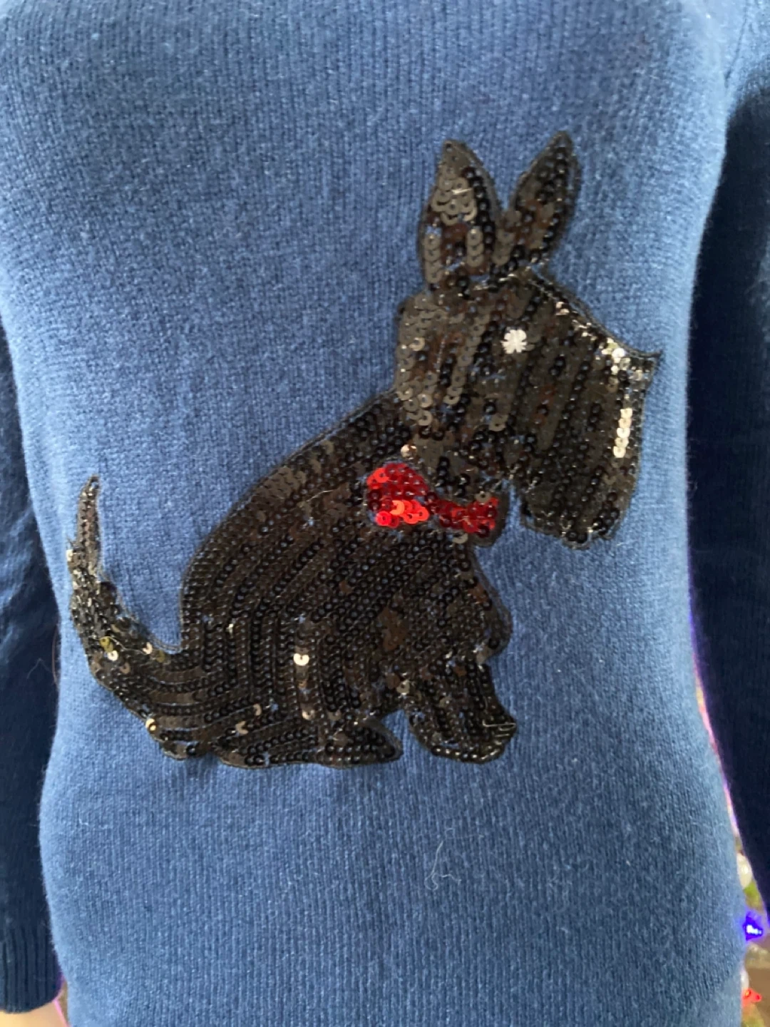 EUC: Ricki’s Blue Sweater with Sequin Scottie Dog XS