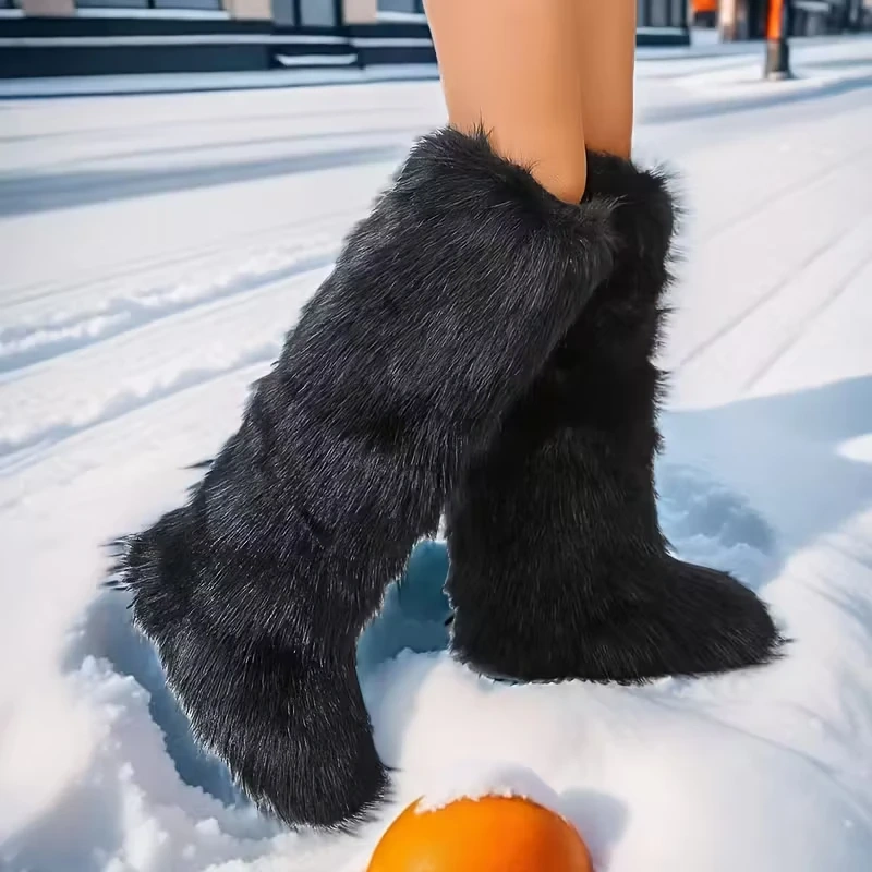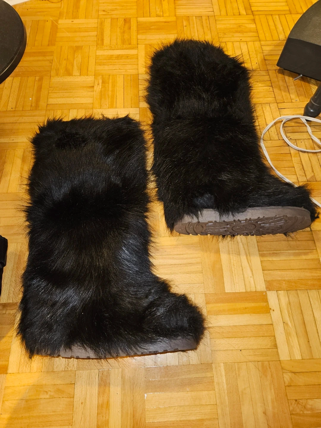 Selling 2 pairs of fuzzy black winter boots! They're super cute and perfect for keeping your feet warm this winter. The height is 19.6 inches/50 cm, and the calf girth is 14-15.7 inches. Size 40 & 44