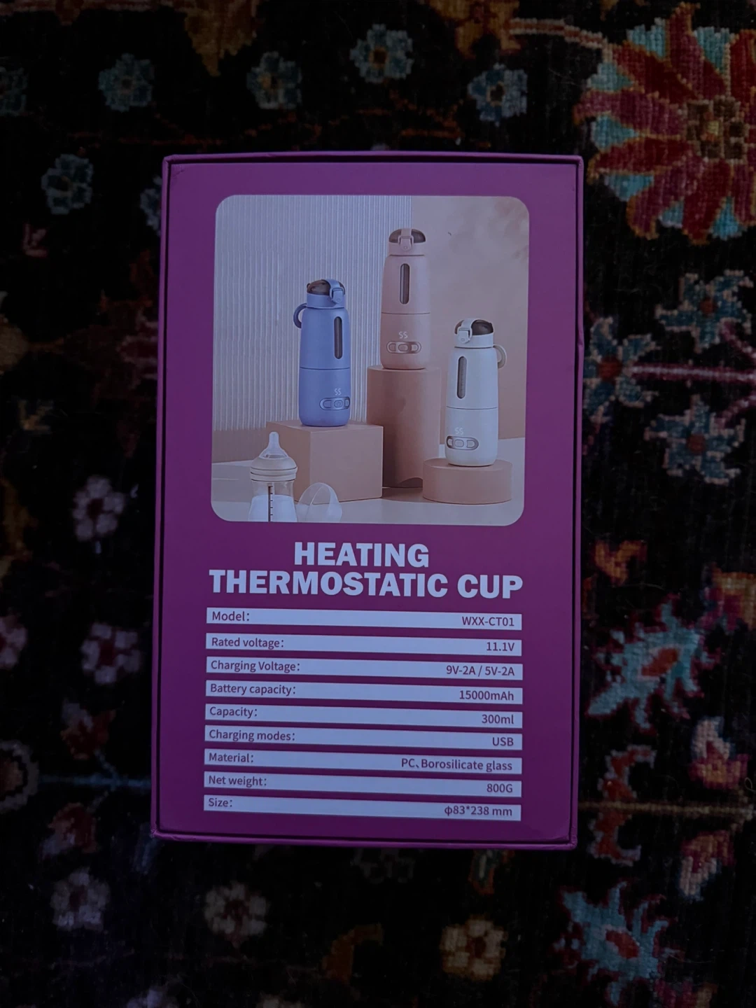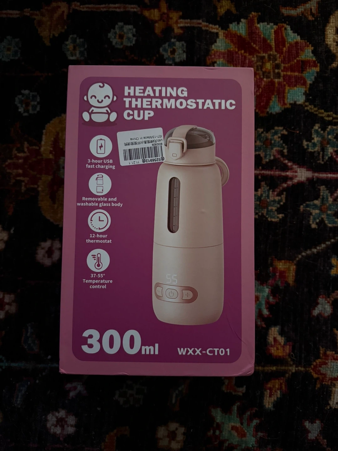 Selling a heating thermostatic cup for baby’s milk. It holds 300ml and comes in its original box. Never used $73. It features 2-hour USB fast charging and a removable and washable glass body. It also has 37-55°C temperature controls