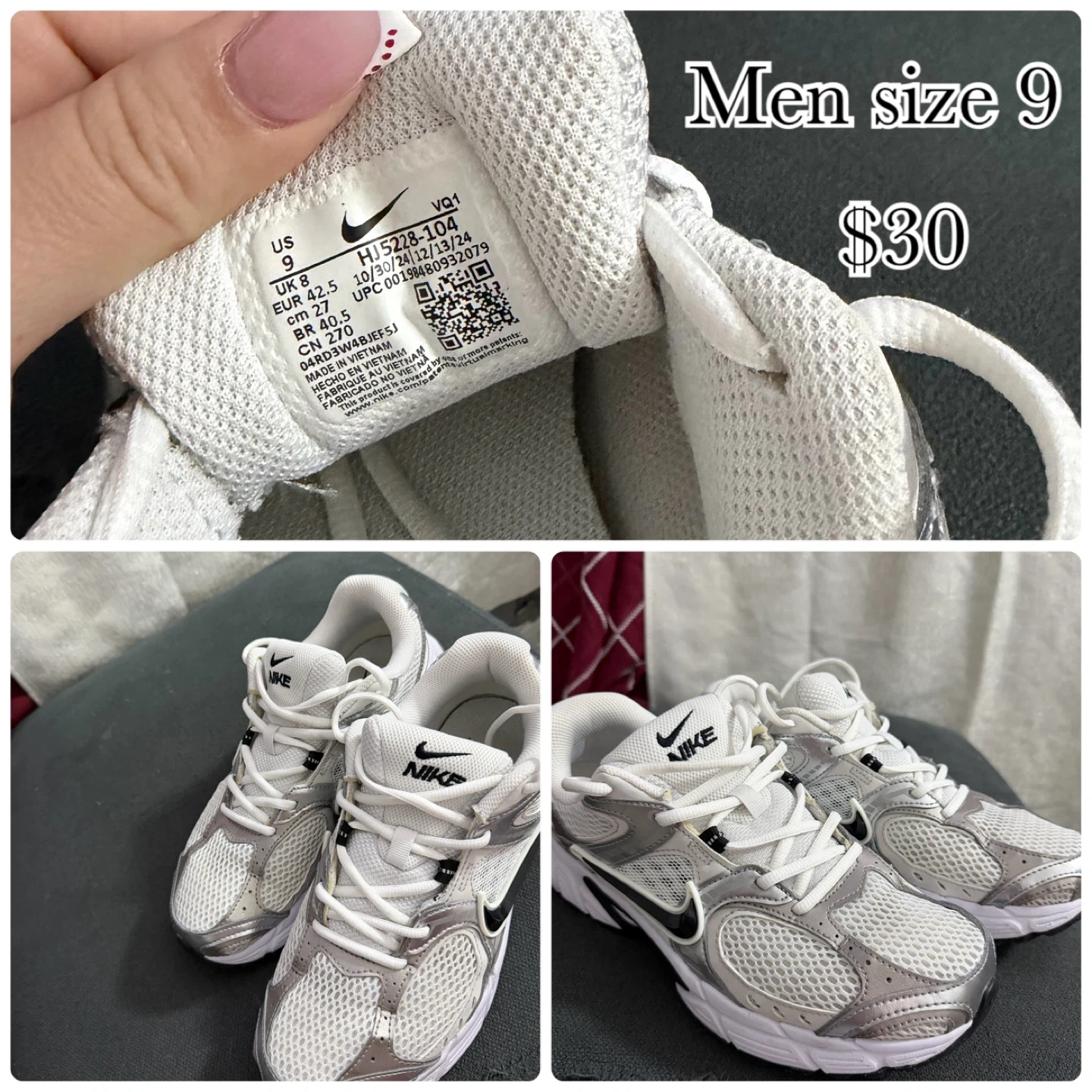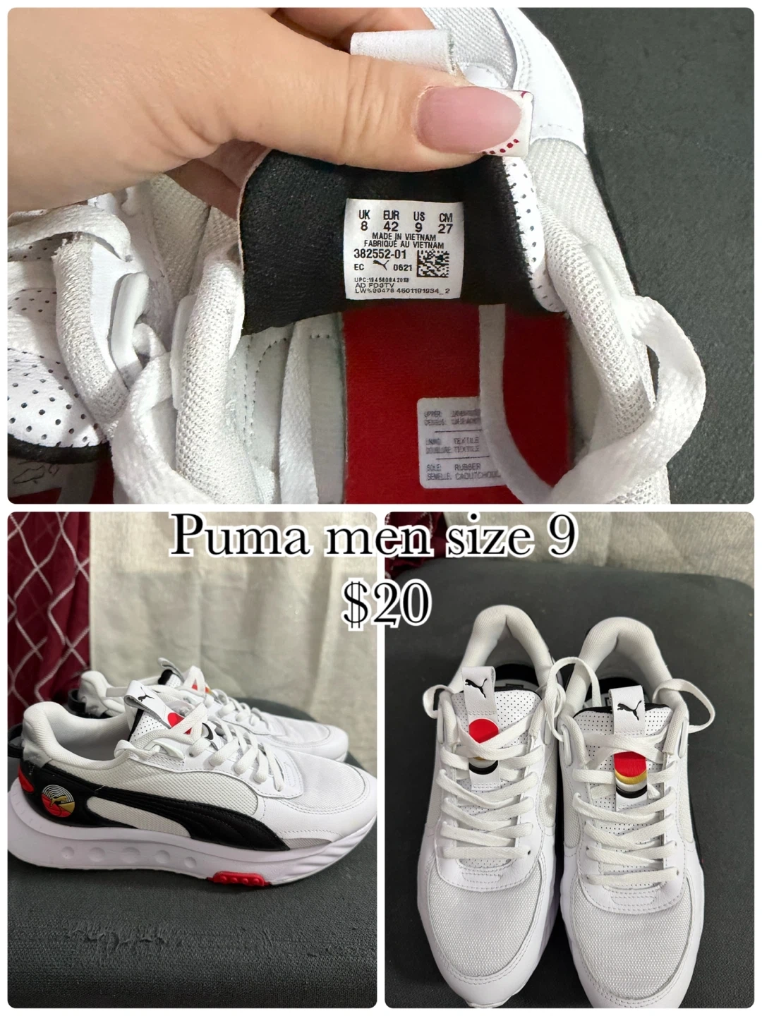 Buy & SellMen's Nike, Jordan, Reebok, New Balance - Size 9/9.5Men's Nike, Jordan, Reebok, New Balance - Size 9/9.5$27I have a variety of men's sneakers for sale: - Nike, size 9 - Air Jordan, size 9 - Reebok, size 9.5 - New Balance, size 9EstadoLike newSize9BrandNikeWHERE TO MEETCheck LocationView MapSELLERverifiedVickyMorrisania650 reviews9 chats·4 favorites·176 viewsSEND CHAT TO SELLERHi Vicky! I’m interested in your listing.Hi Vicky! I’m interested in your listing.Get the Karrot app to chatSign In to chat