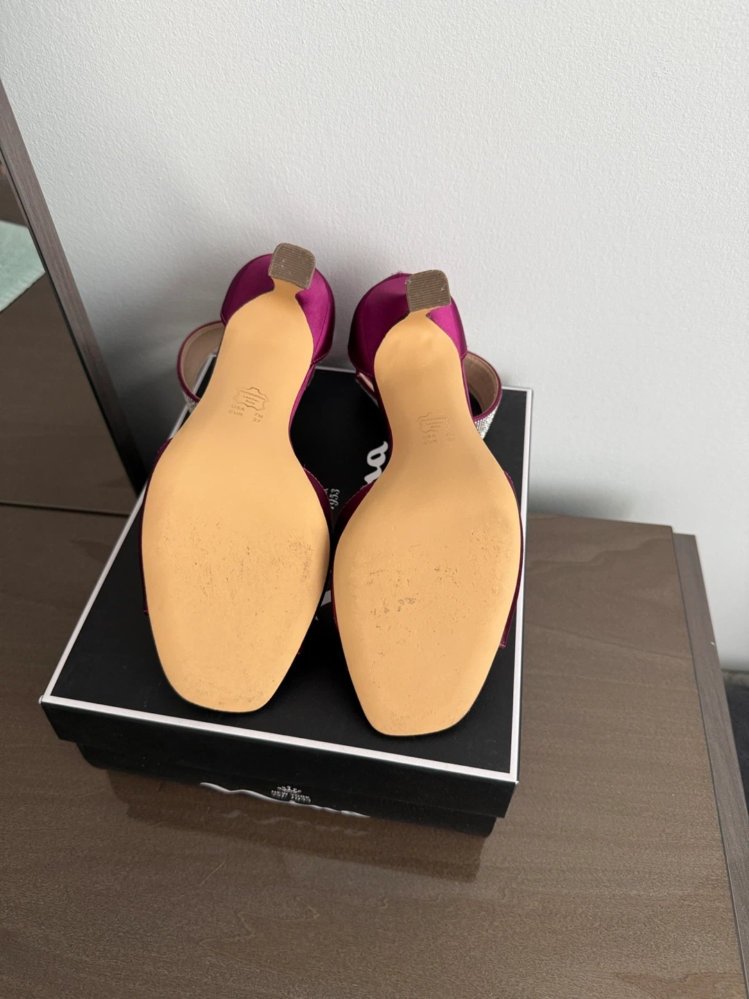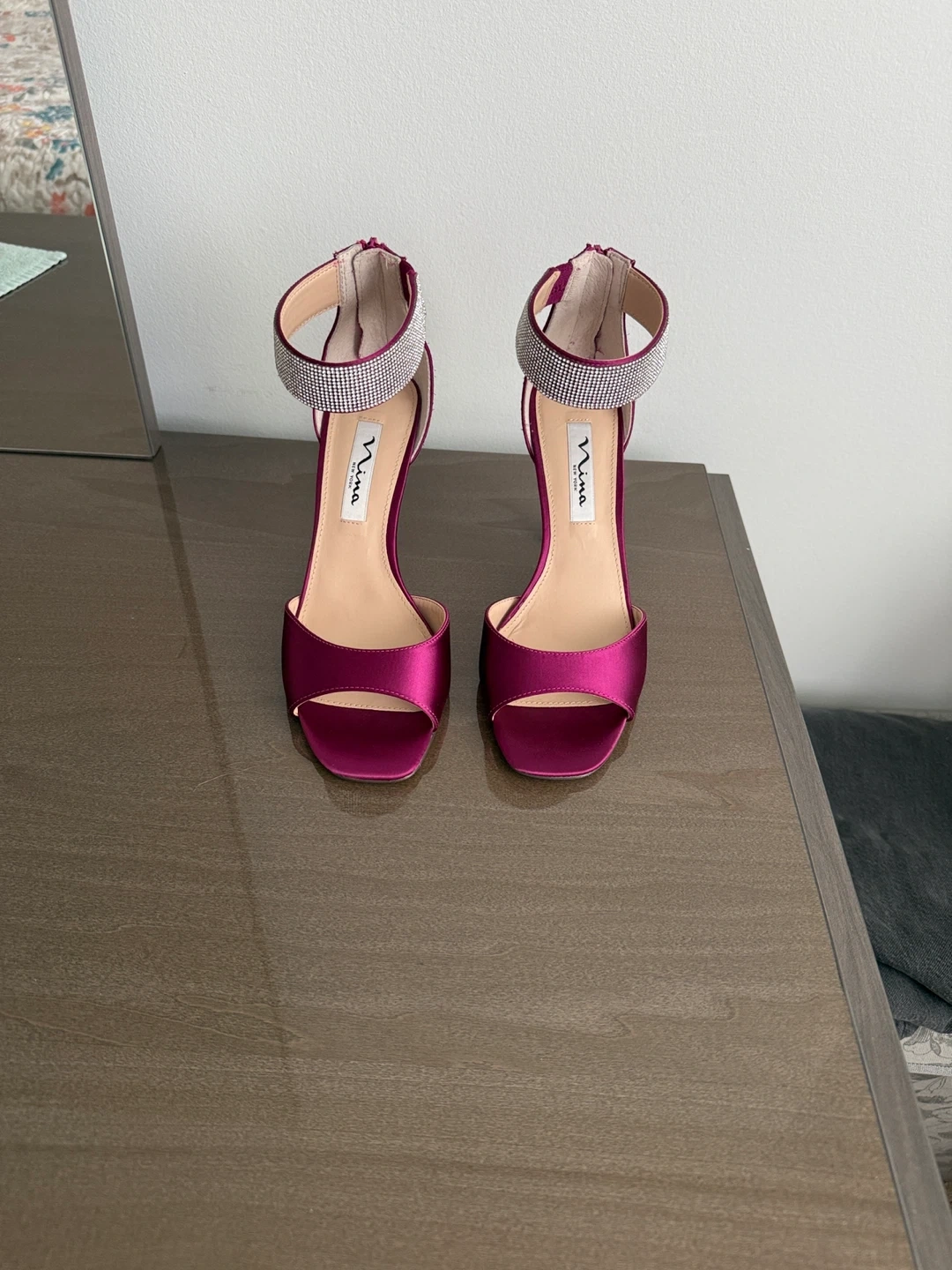 Nina Dezzie-YS Wine Crystal Satin Heels - Size 7