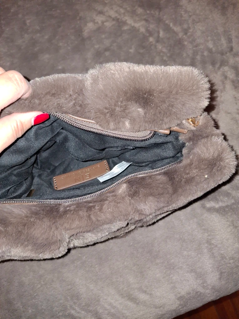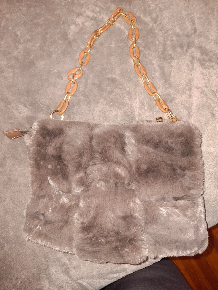 Selling a cute faux fur purse from Expressions NYC! It features a chain strap and a zipper closure. The interior is lined with a black material. Perfect for adding a touch of texture to your outfit
