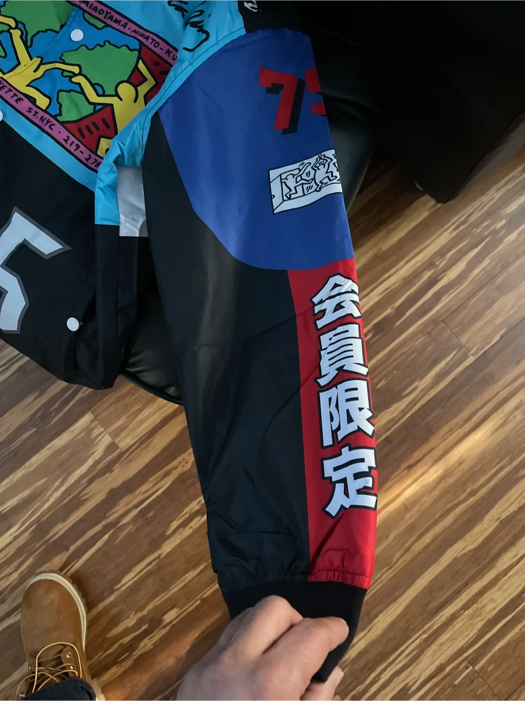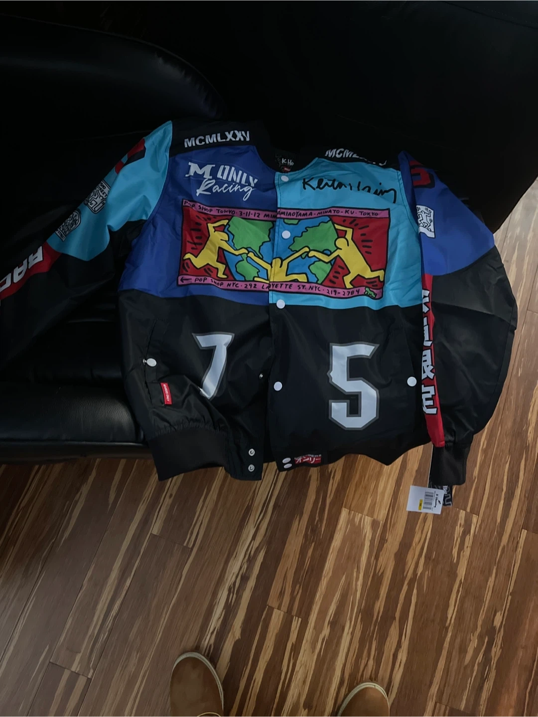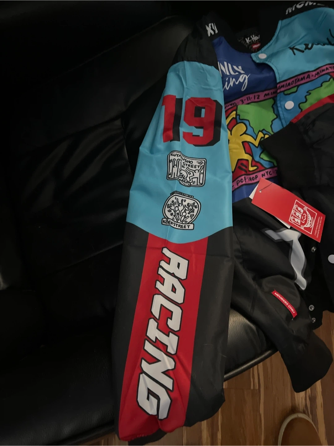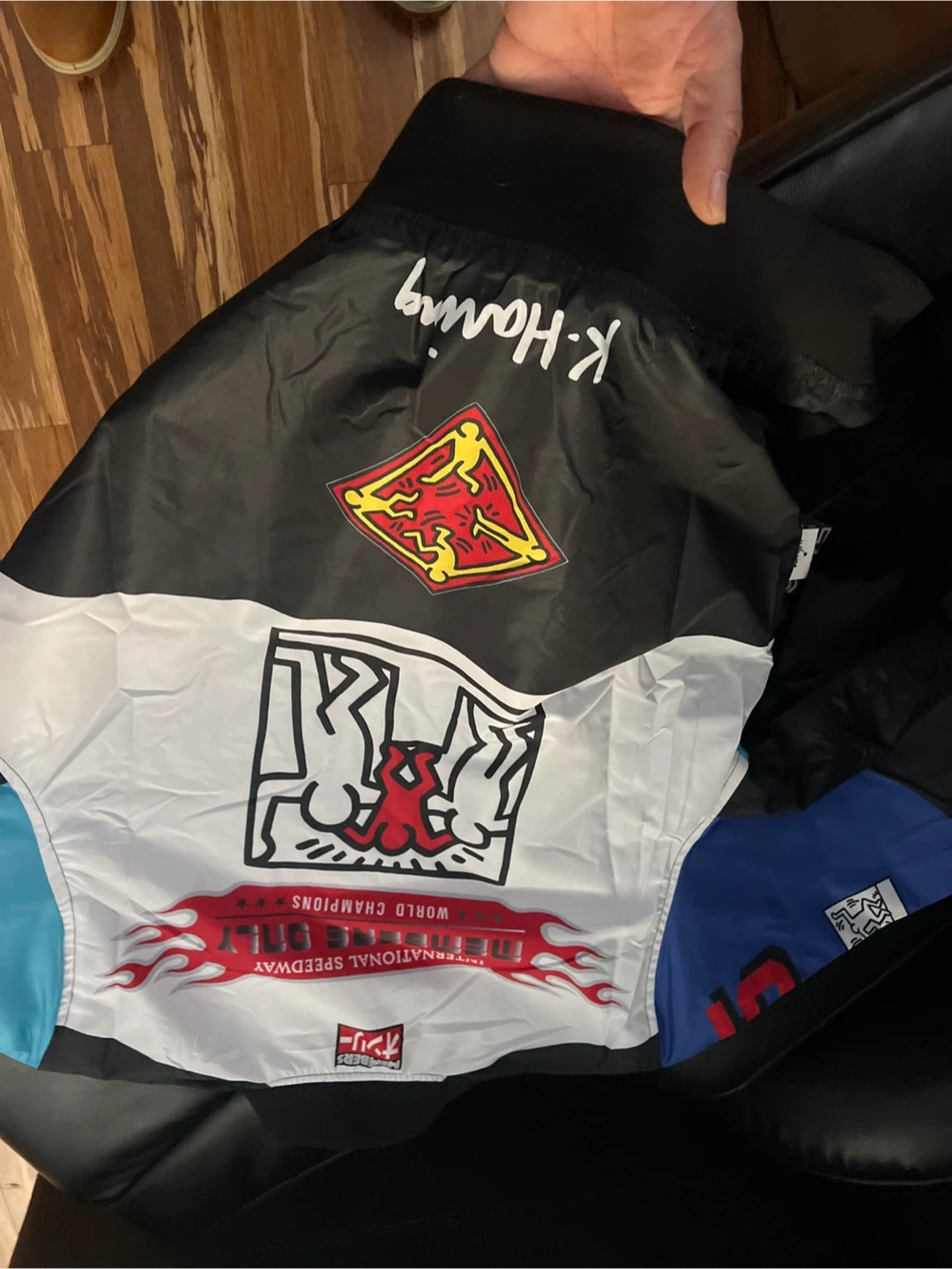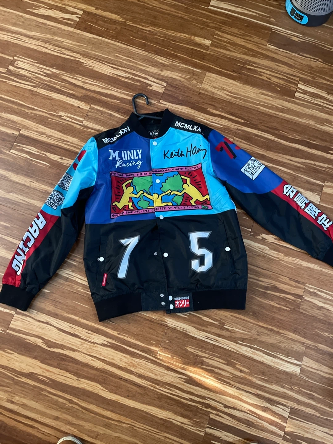 Selling a Keith Haring Racing Jacket! The jacket features a vibrant and unique design with Keith Haring's iconic artwork. It's a statement piece that's sure to turn heads. Perfect for fans of Keith Haring!