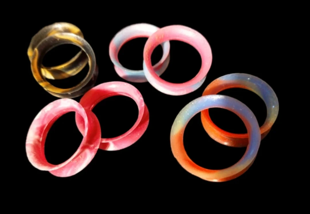 BRAND NEW 4 pairs of 1" lightweight single flair silicone plugs...black and orange, blue and pink, pink and white and rainbow. #1" #plugs #gauges #1"plugs #gaugedears