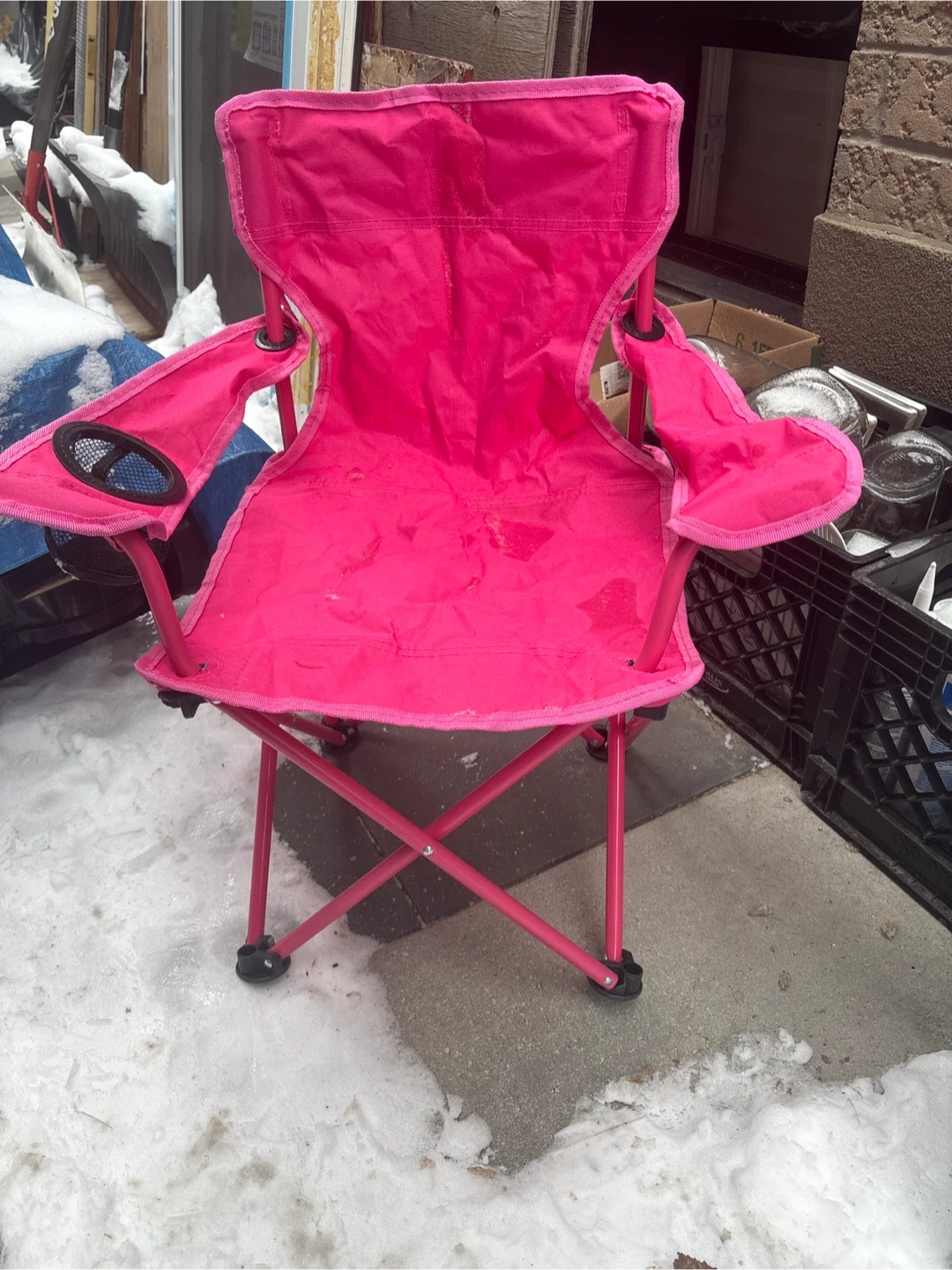 Selling a cute pink Ozark Trail kids' camping chair! It's lightweight and easy to carry, perfect for outdoor adventures. The chair has a built-in cup holder too