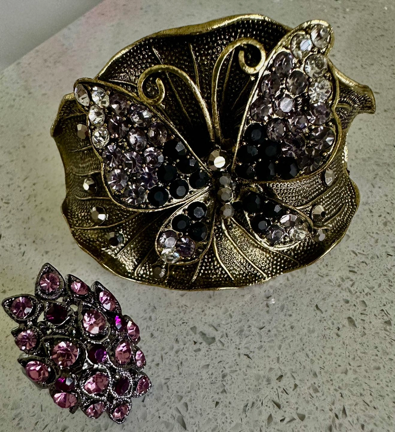 Stone in Lavender and purple colour w/matching ring, ring size adjustable