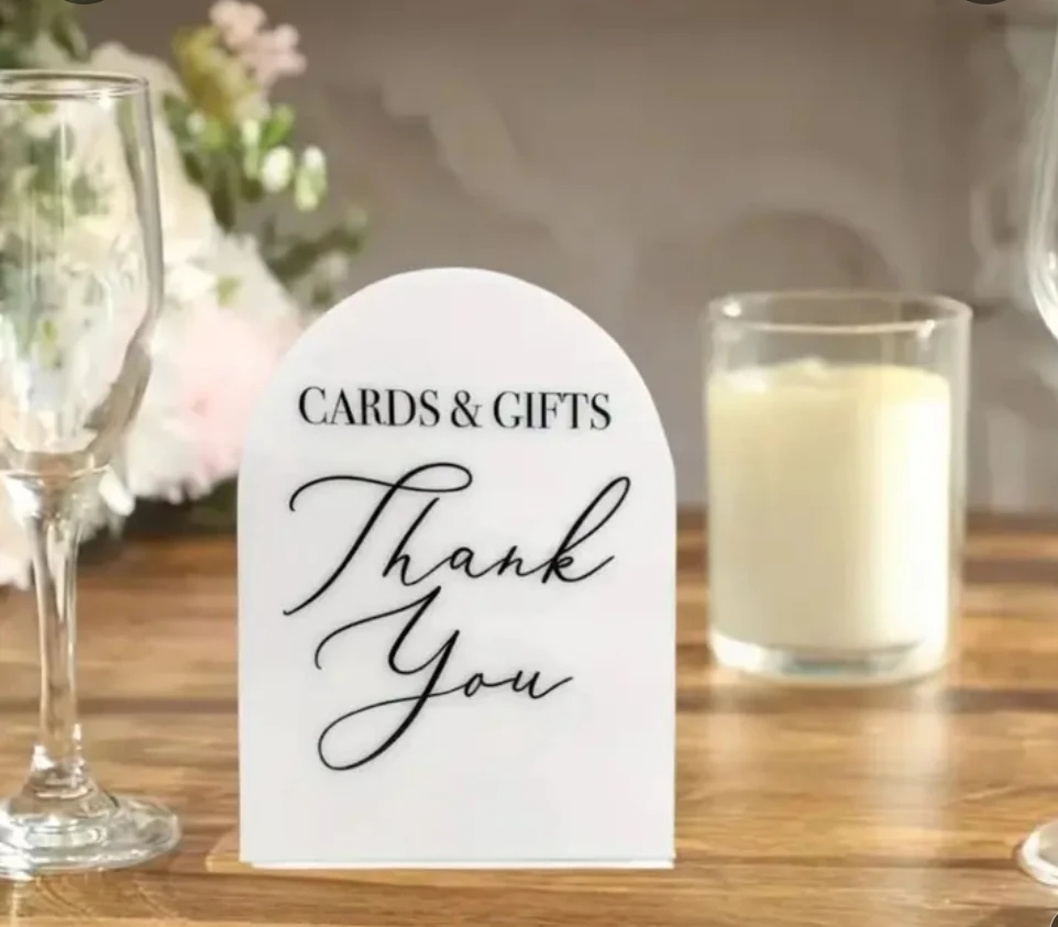 Selling acrylic table signs perfect for weddings or parties! They're white and measure about 15cm tall and 10cm wide.