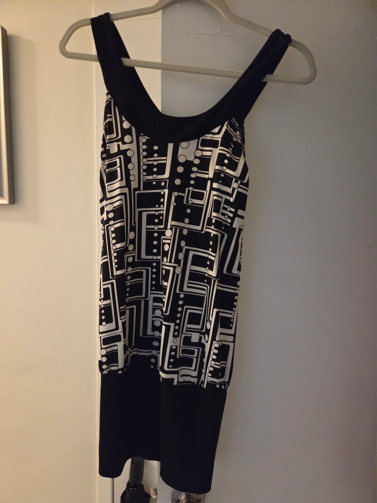 Cute tank dress with a unique black and white pattern! Perfect for summer or layering. It's in great condition and ready for a new closet!