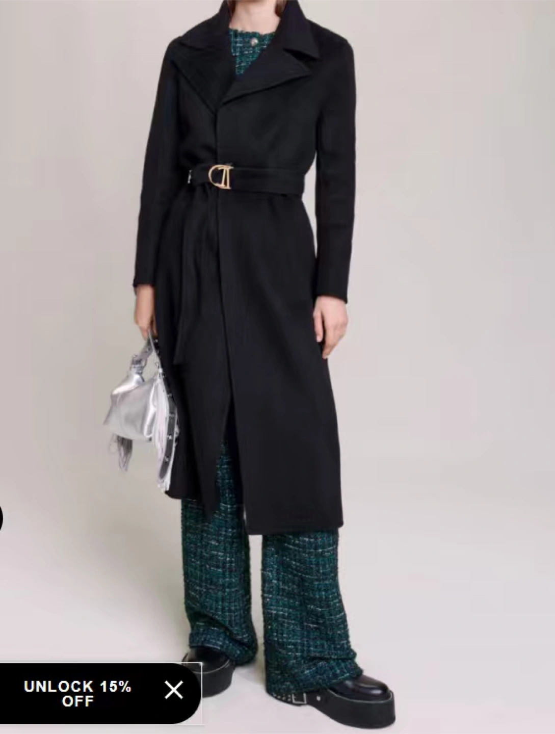 Selling a Maje belted double-faced coat (black) in size XS/FR 34. It's a stylish piece that would be a great addition to your wardrobe