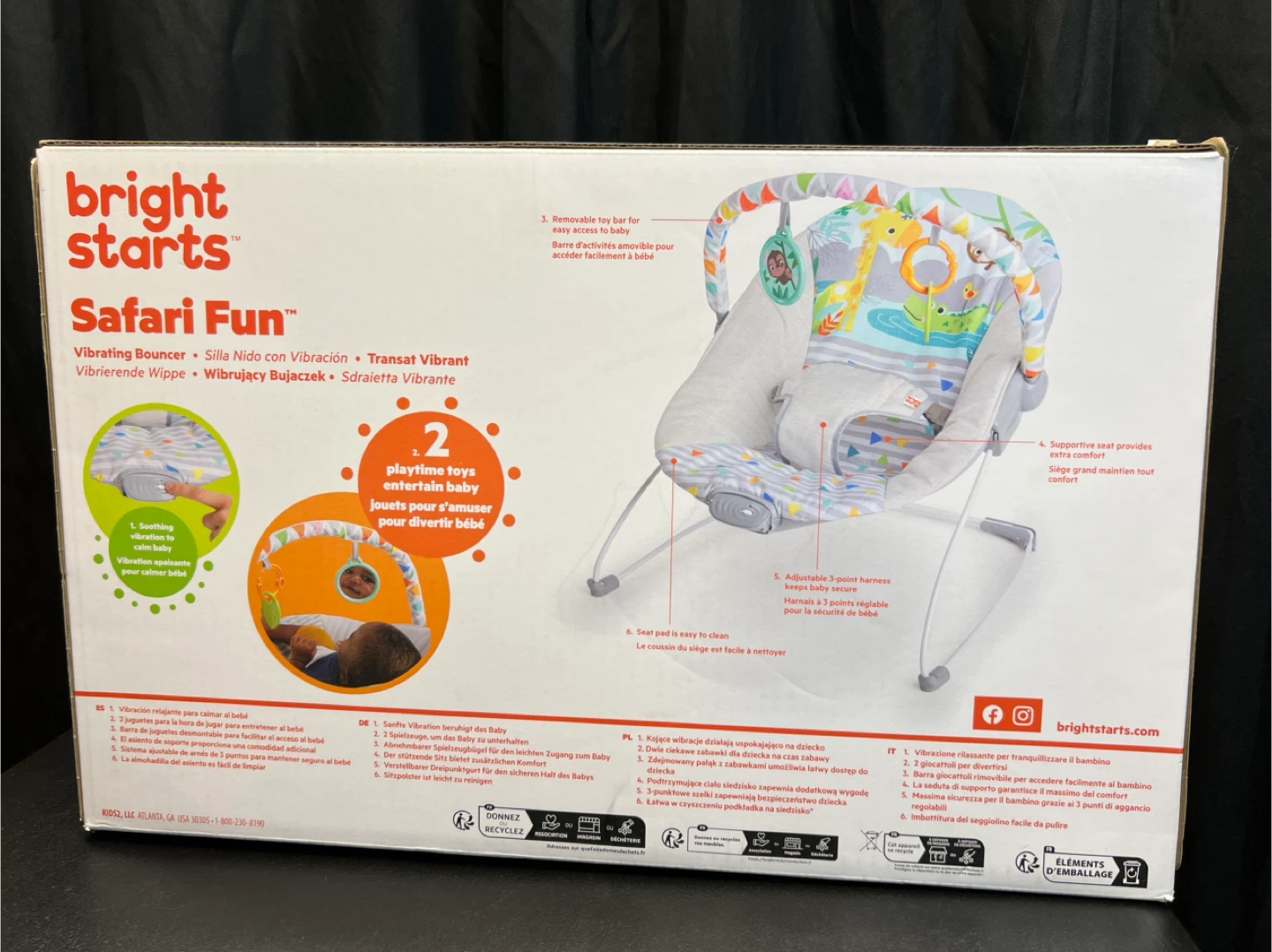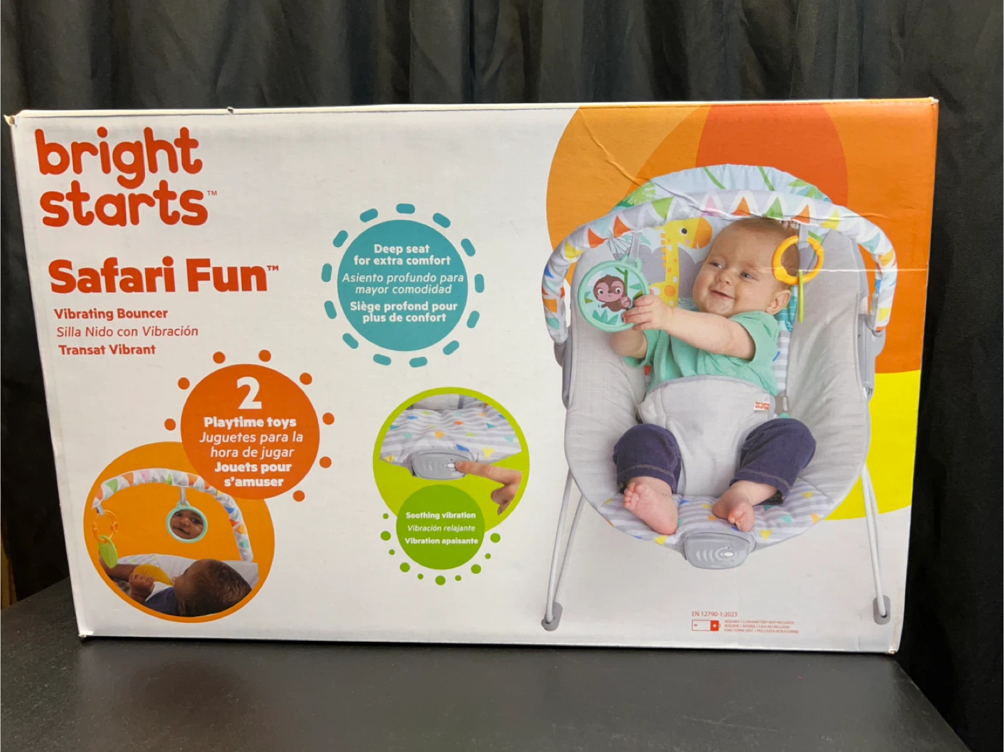 Selling a Bright Starts Safari Fun Vibrating Bouncer! This bouncer features a deep seat for extra comfort and soothing vibrations to calm baby. It also comes with 2 playtime toys to entertain your little one. The support provides even greater comfort. Comes with the original box!