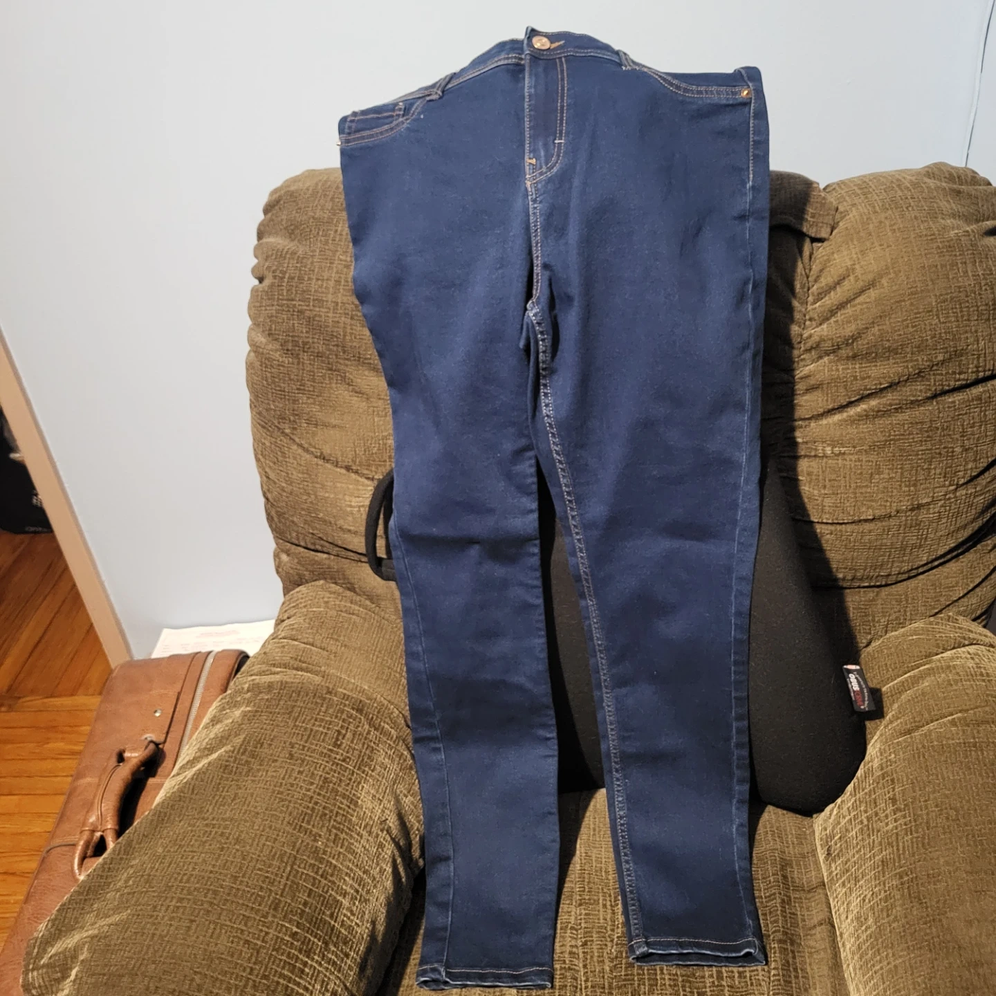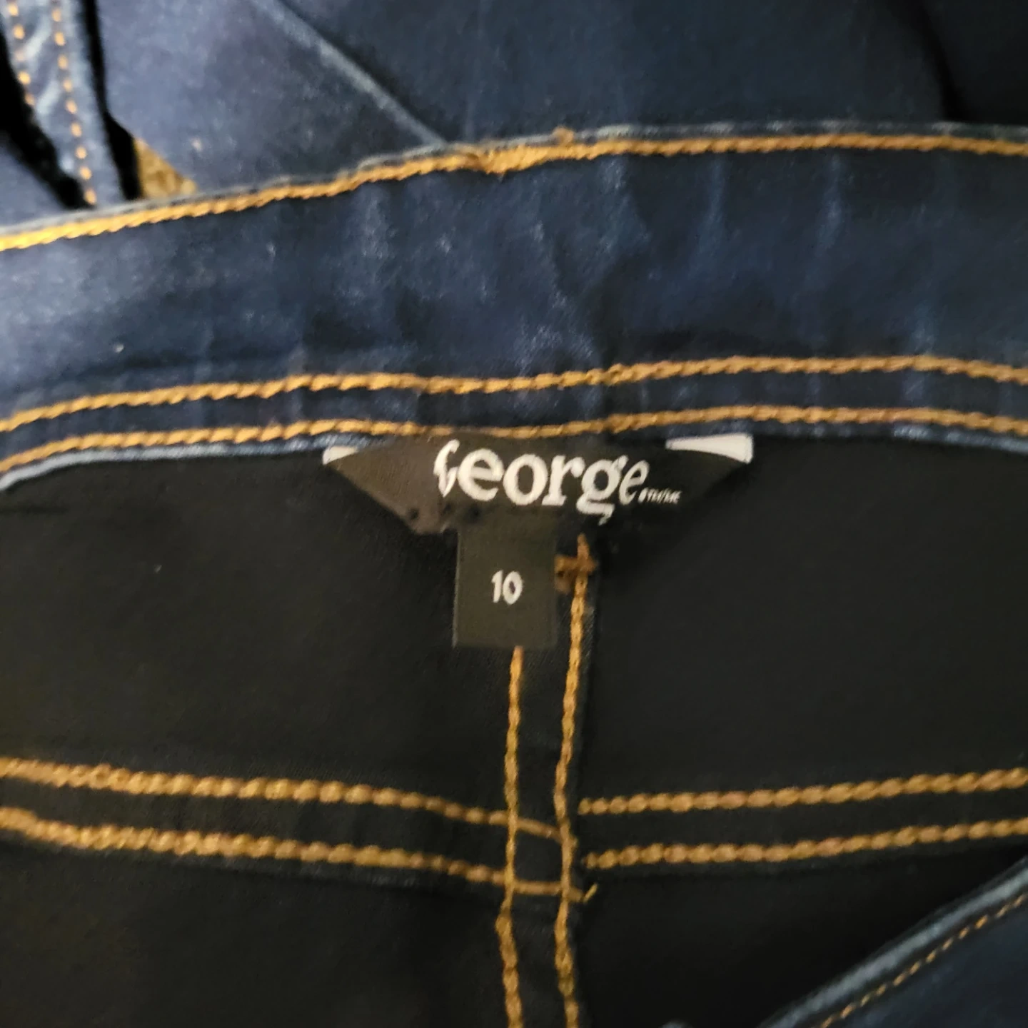 Selling a pair of George ladies' jeggings in size 10. They are a dark blue colour and sit at the waist. They are fitted through the hip and thigh with a skinny leg style