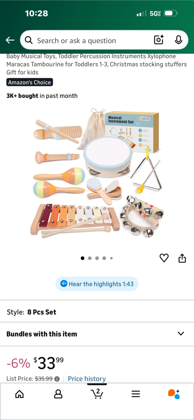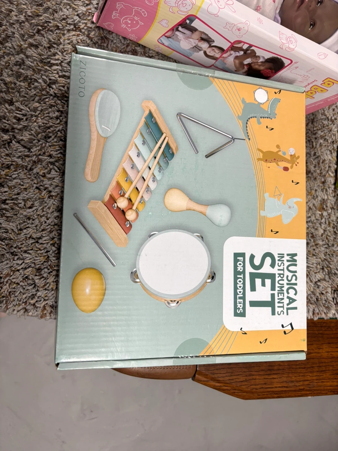 I'm selling a new Zicoto musical instrument set for toddlers! This set includes a variety of instruments perfect for little hands to explore music and rhythm. The box includes a xylophone, triangle, maracas, tambourine, and more! Originally bought for $33.99