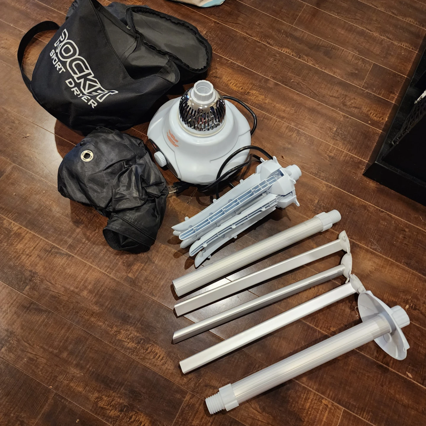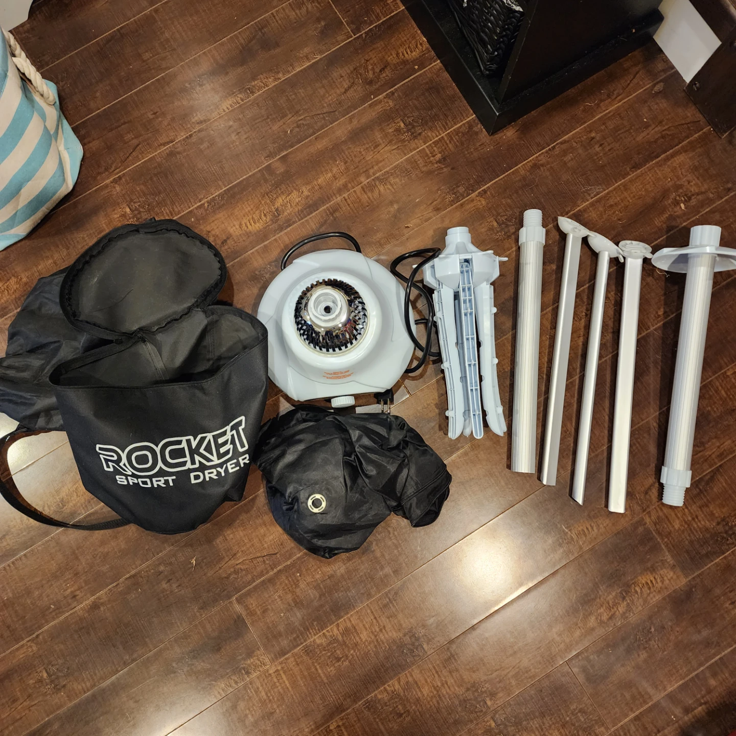 Retails for $200 + tax. Selling a Rocket Sport Dryer. It comes with its original bag and all the components you see in the photos. Great for drying sports equipment quickly and efficiently!