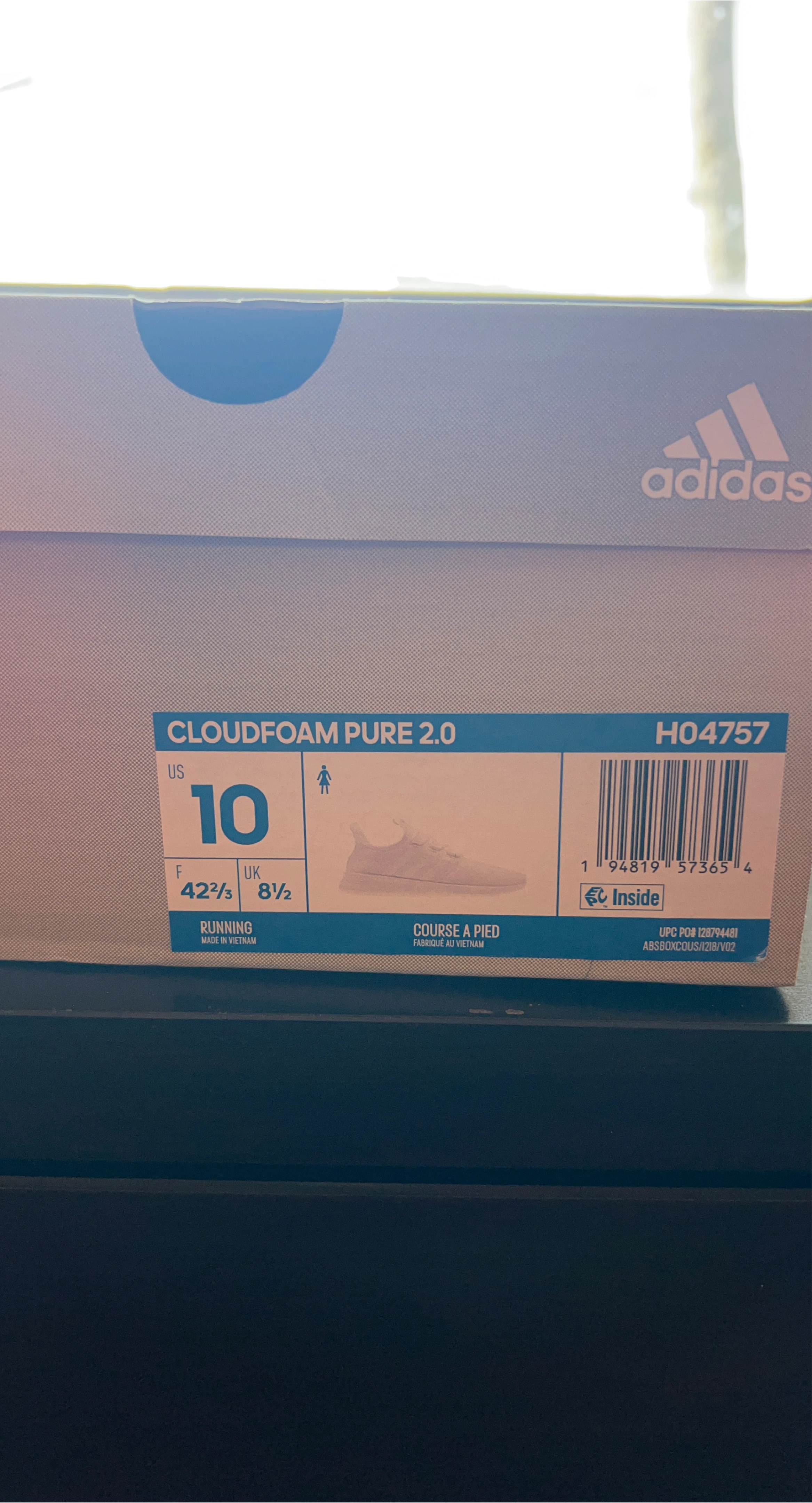 Selling a pair of Adidas Cloudfoam Pure 2.0 running shoes. Worn a few times. They are a US size 10. The box is included!