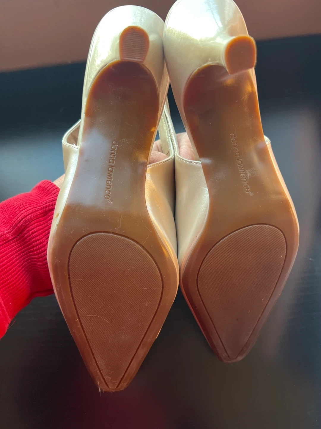 Selling a pair of Donna Lawrence heels in size 10M. They're the Classy Champg Mega Pat style and come in a beautiful champagne color. Perfect for the holidays!
