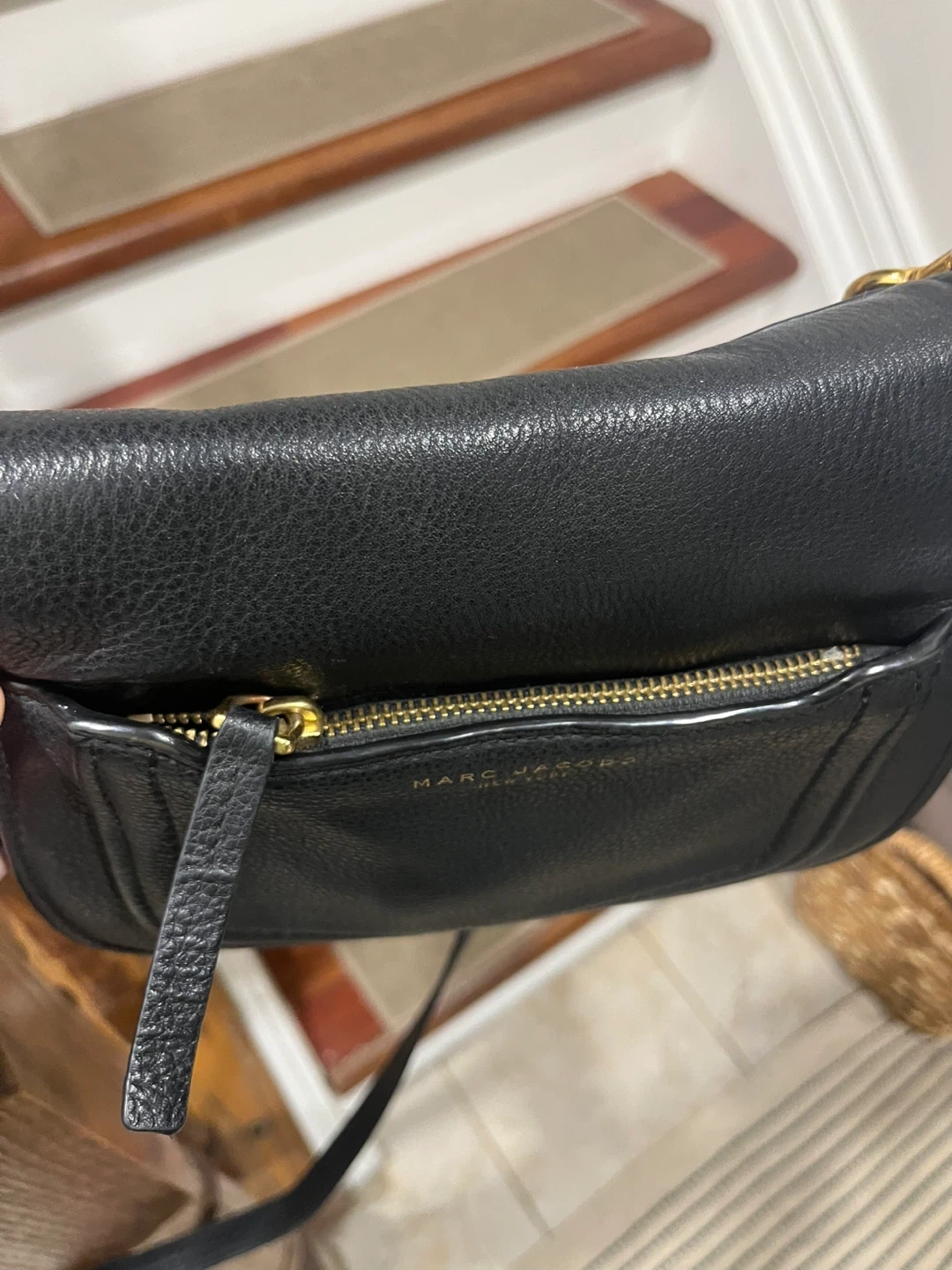 Selling a gently used Marc Jacobs crossbody bag in black leather. It's in great condition and ready for a new owner! The bag features gold-tone hardware and a convenient adjustable strap. Perfect for everyday use!