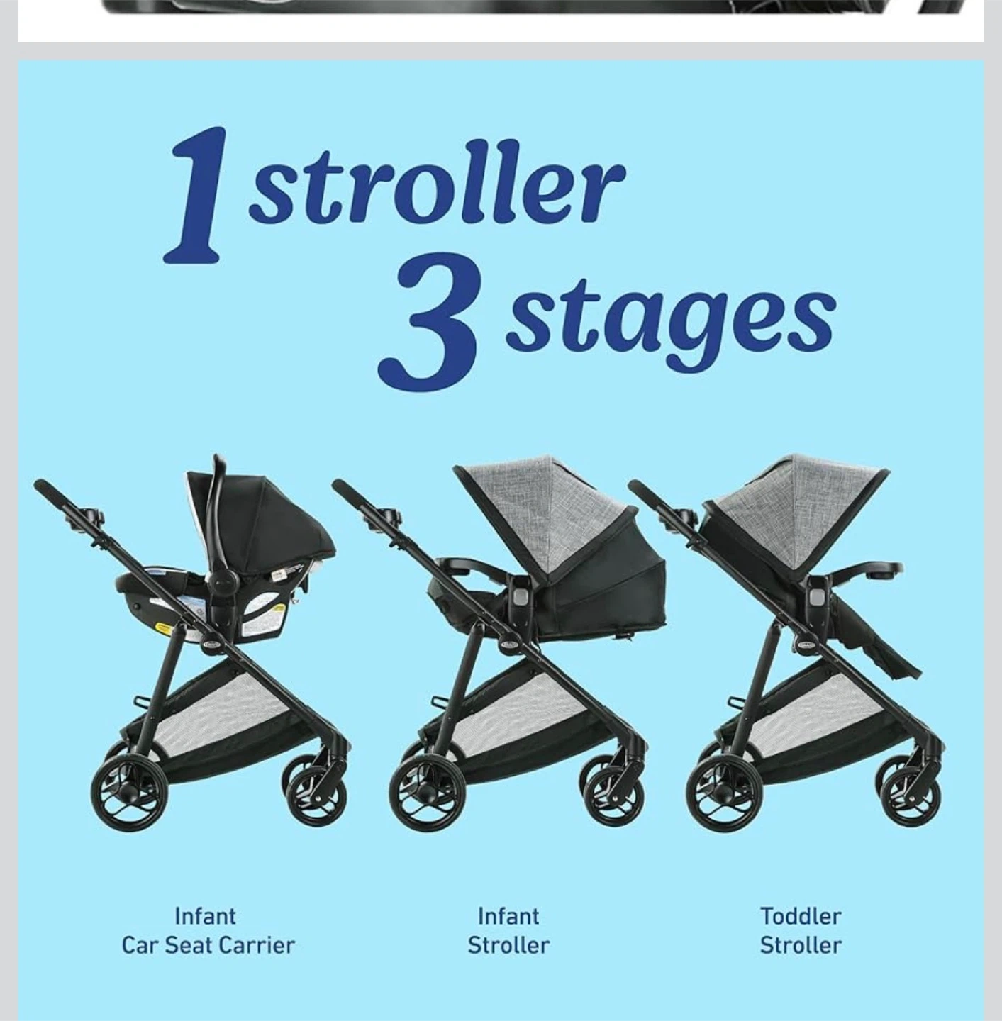 Selling a Graco stroller that adapts to 3 stages: infant car seat carrier, infant stroller, and toddler stroller. It's a versatile option for growing families!