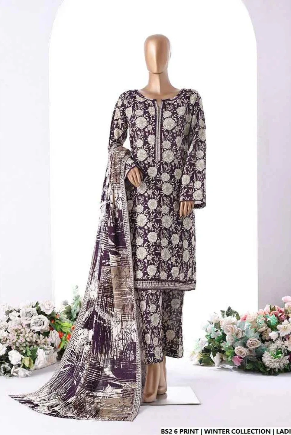 Here's a beautiful floral ladies suit from the Winter Collection! It features a lovely floral print in shades of purple and white. Perfect for adding a touch of elegance to your wardrobe!