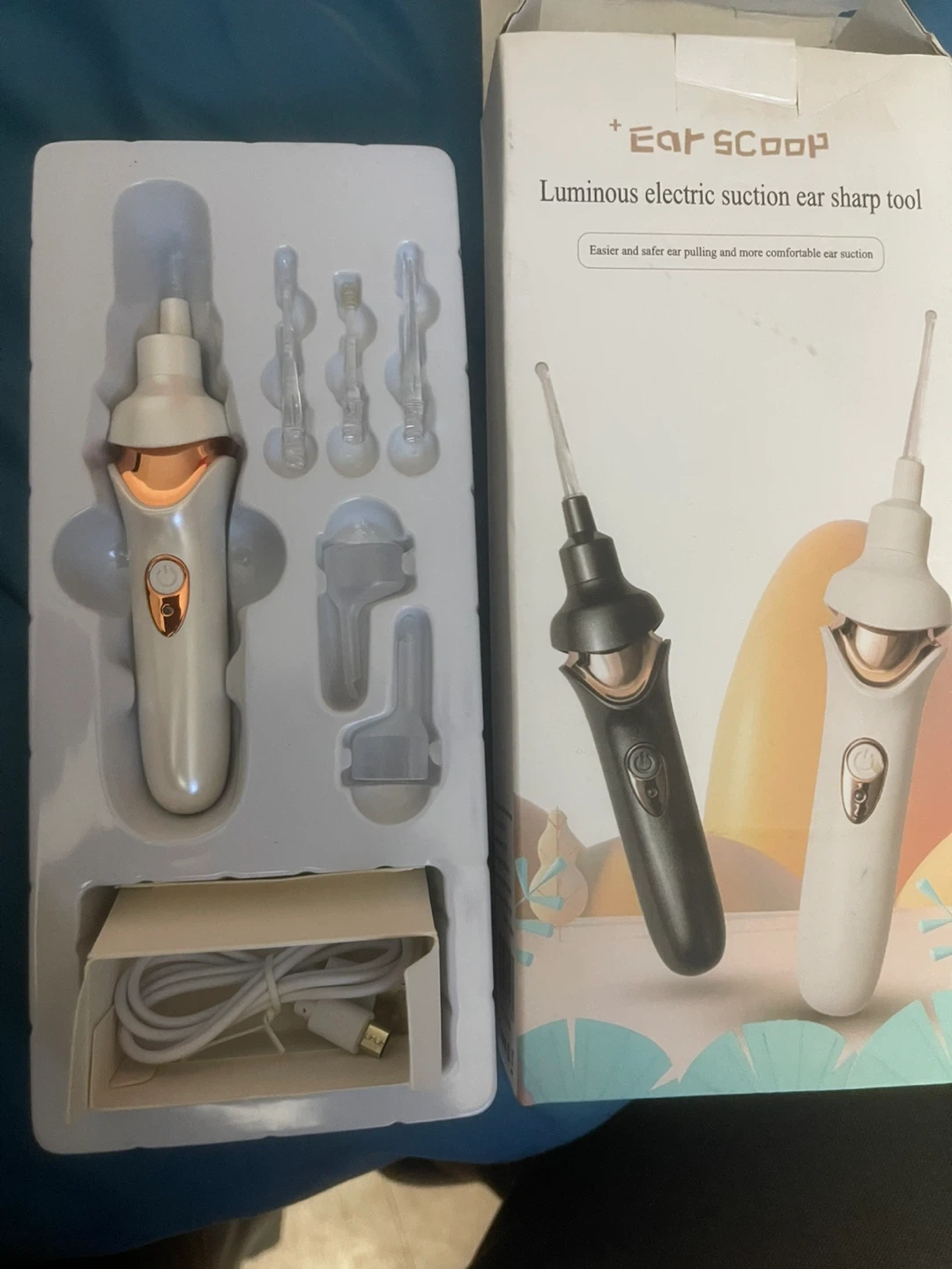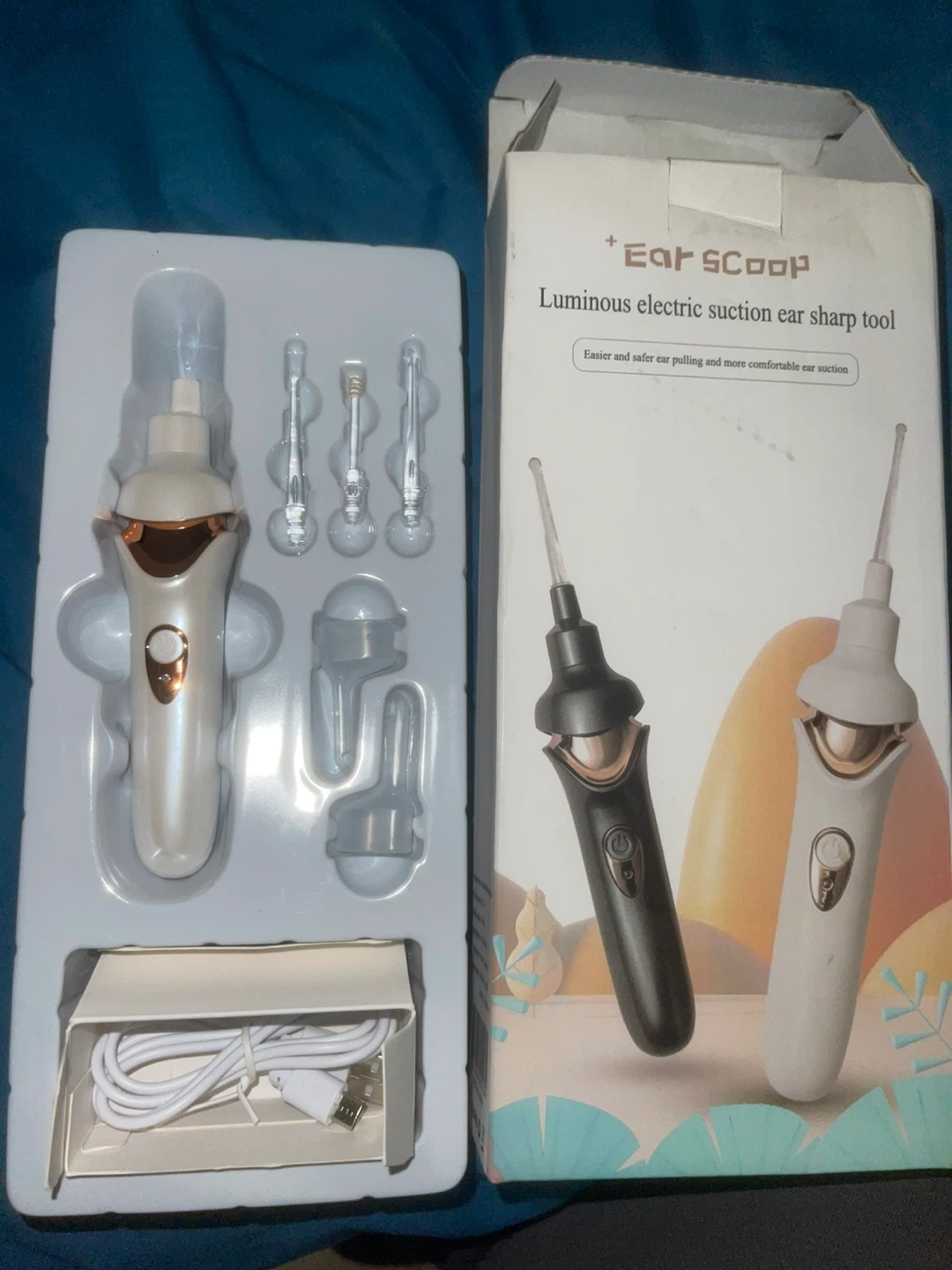 Selling an Ear Scoop luminous electric suction ear sharp tool! It's designed for easier and safer ear pulling and more comfortable ear suction. The box is included, along with all the components shown in the picture.