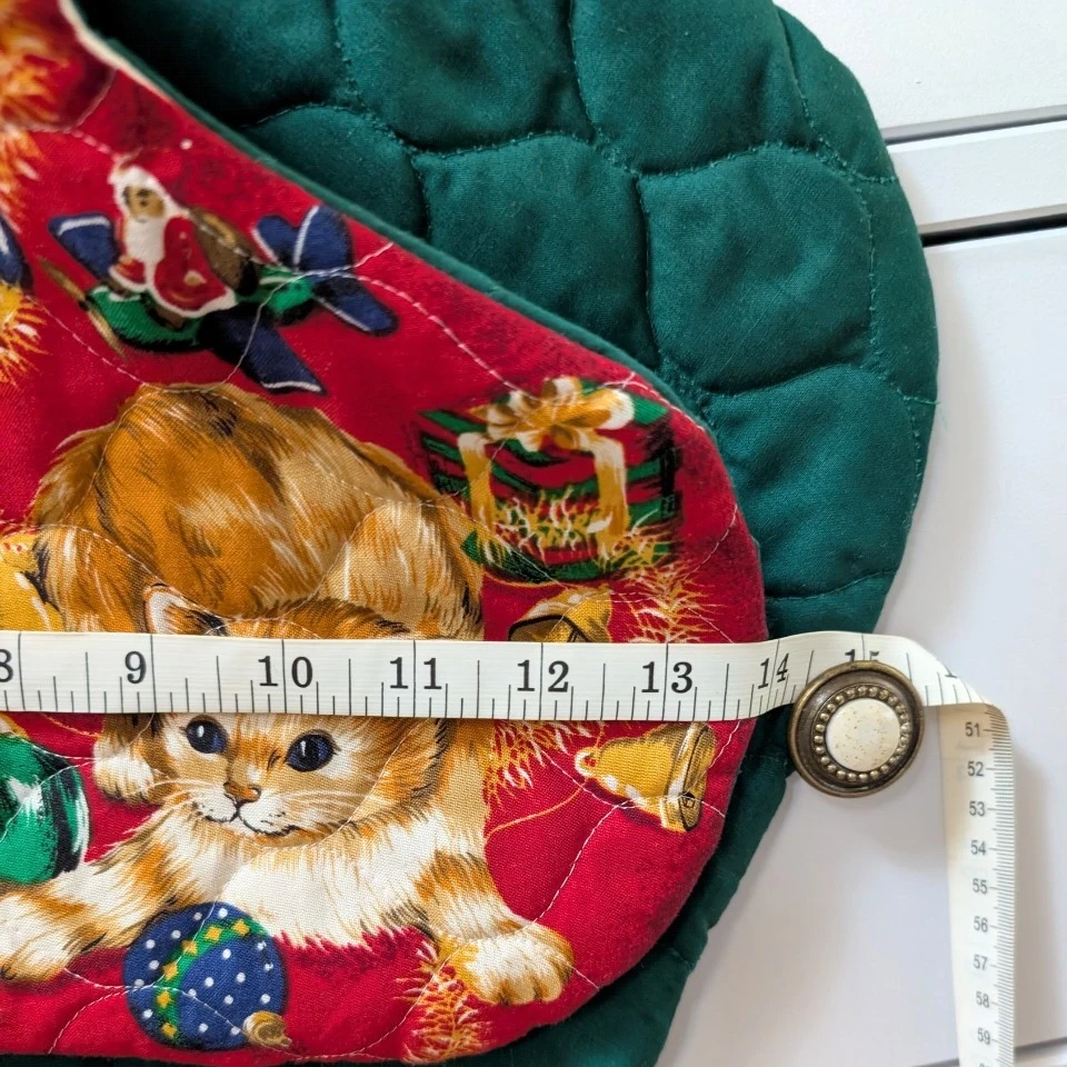 Add a touch of holiday cheer with these festive cat-themed Christmas stockings. Featuring vibrant red and green colors, it's perfect for cat lovers. Large quilted 3D effect Christmas stockings. Retro, vintage, 1980s, 1990s style stockings.