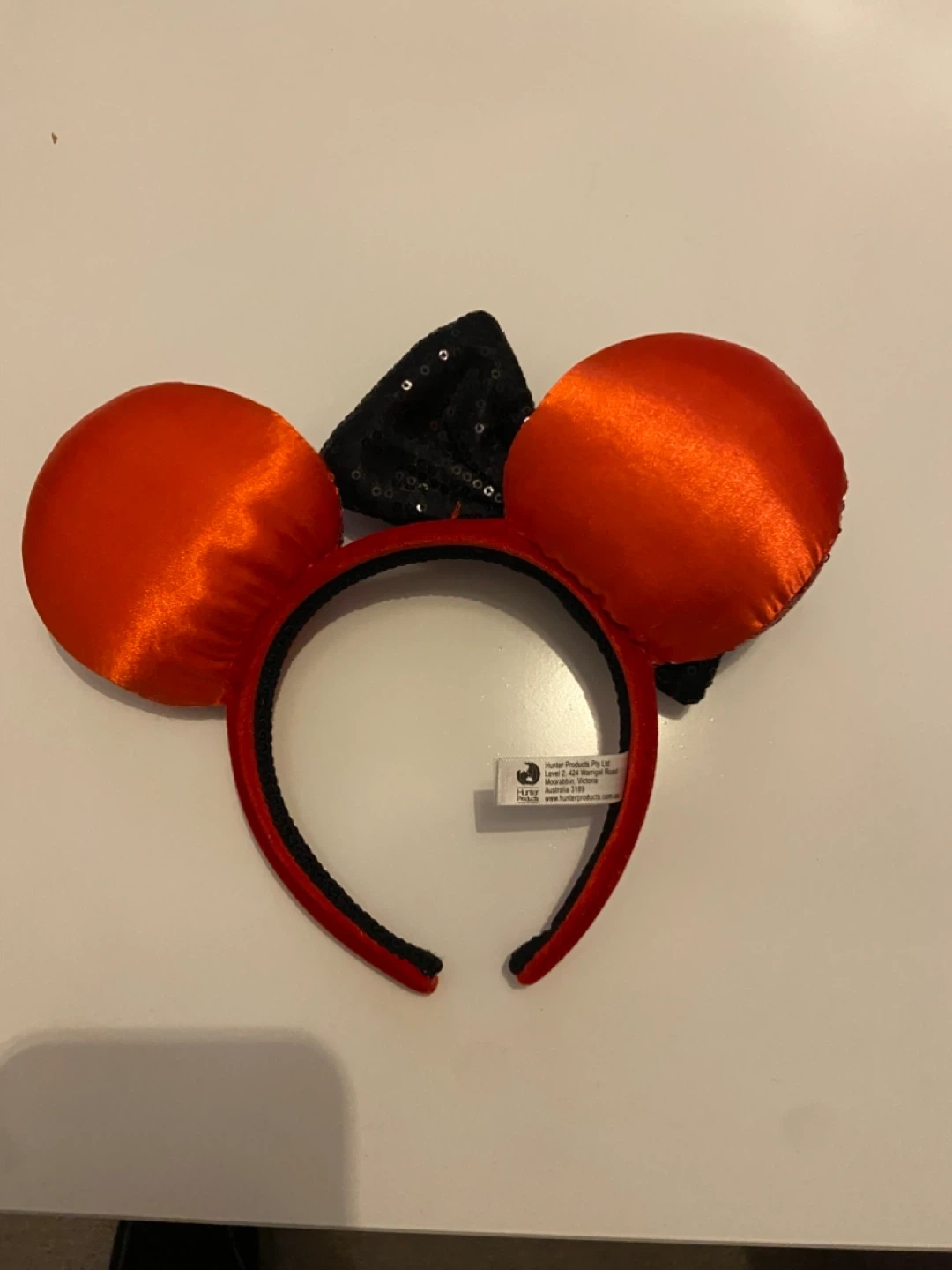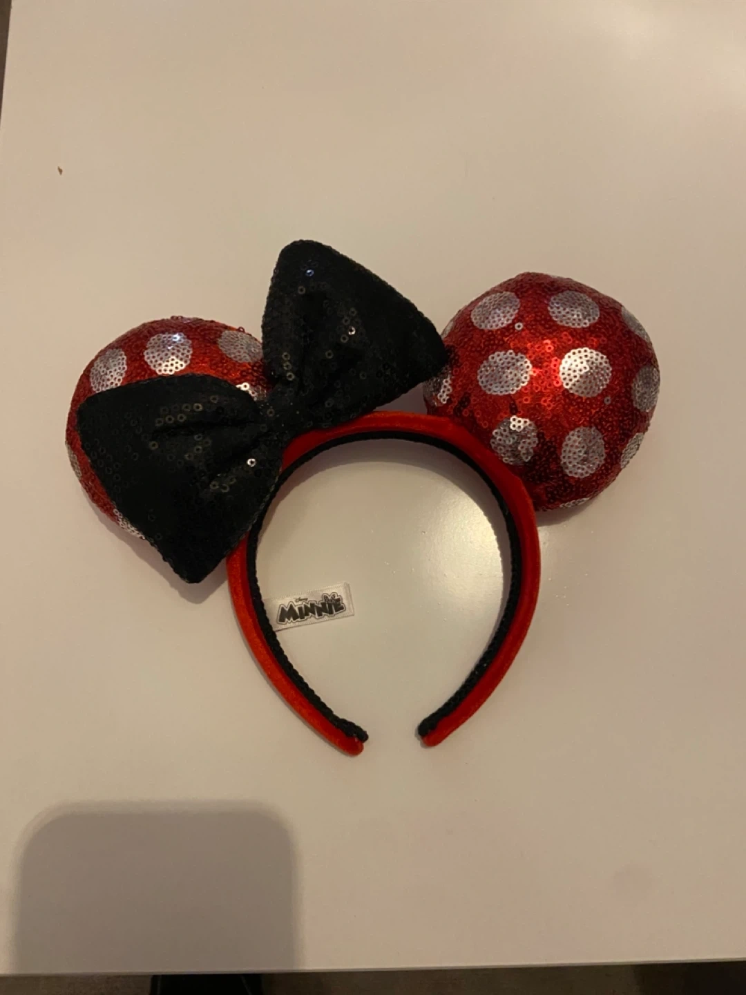 Super cute Minnie Mouse ears headband! Official Disney ears. Perfect for a trip to Disney or just for fun. The ears are red with white polka dots and a black sequin bow. In great condition!