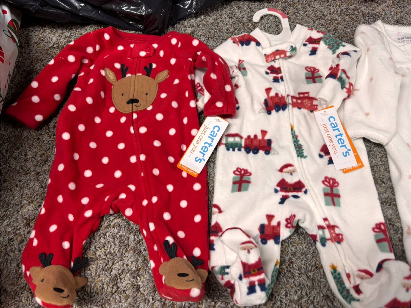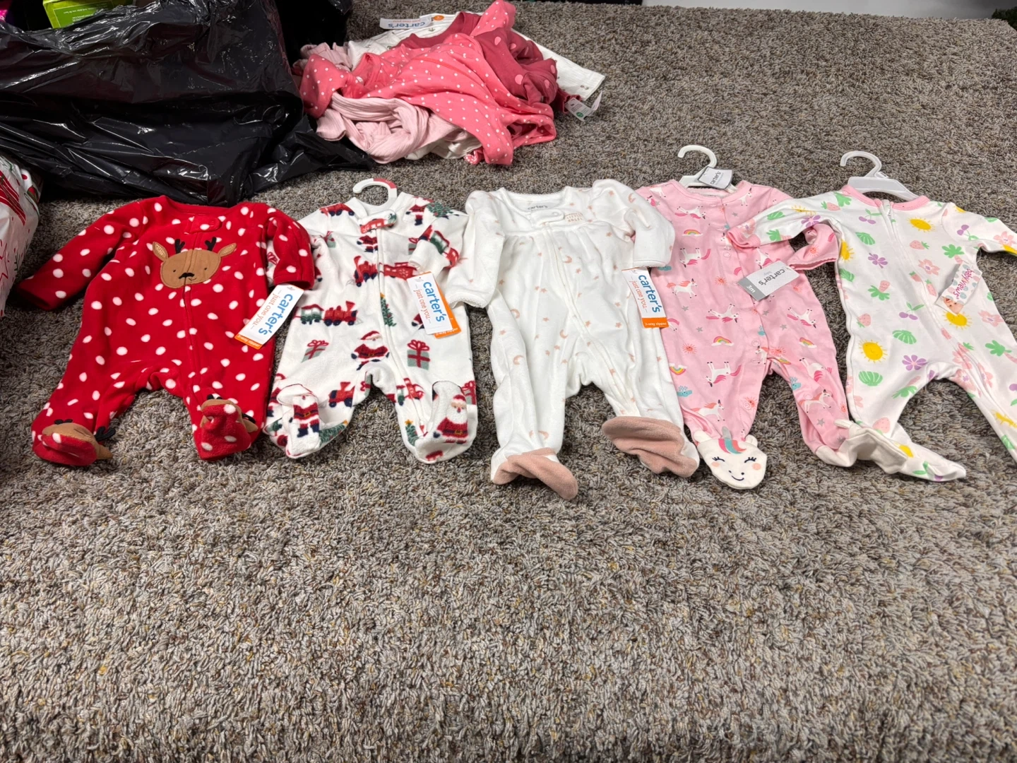 Here's a set of Carter's baby sleepers in size new born to 3M! They're all in great condition and ready for a new little one. The set includes a variety of cute designs.