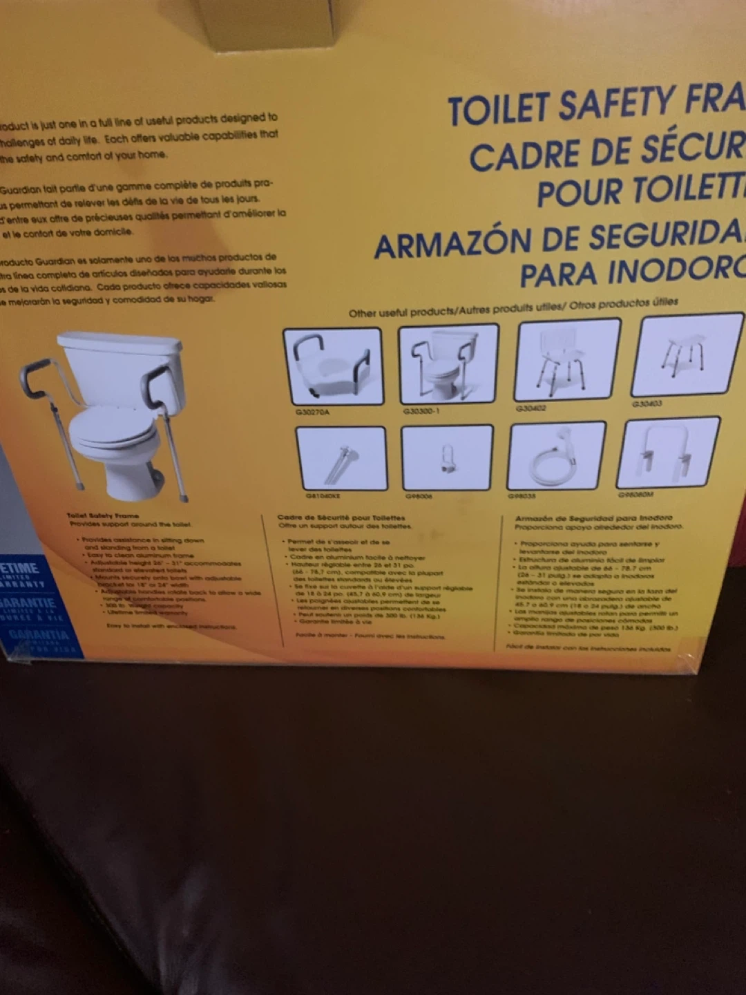 Selling a brand new Guardian Toilet Safety Frame in its original box! This frame provides support around the toilet, making it easier to sit and stand. It's easy to install and adjust to fit most standard toilets. Supports up to 300 lbs. New $100