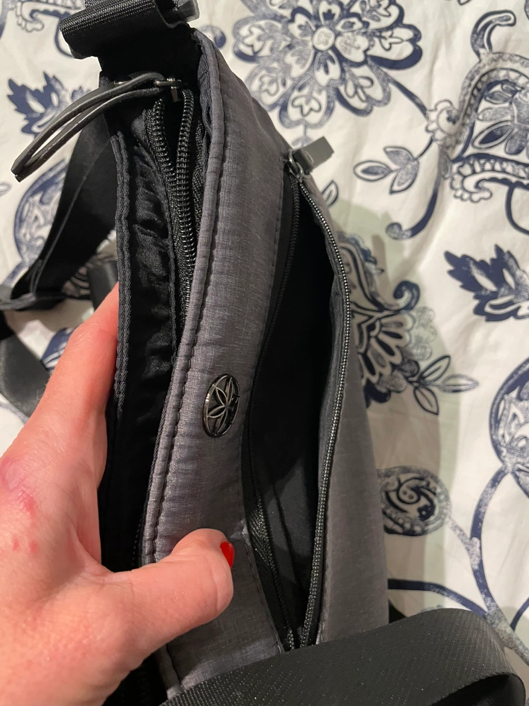 This Gaiam crossbody bag is in great condition and ready for a new owner! It's a versatile bag, perfect for everyday use or travel. The grey colour is neutral and goes with everything