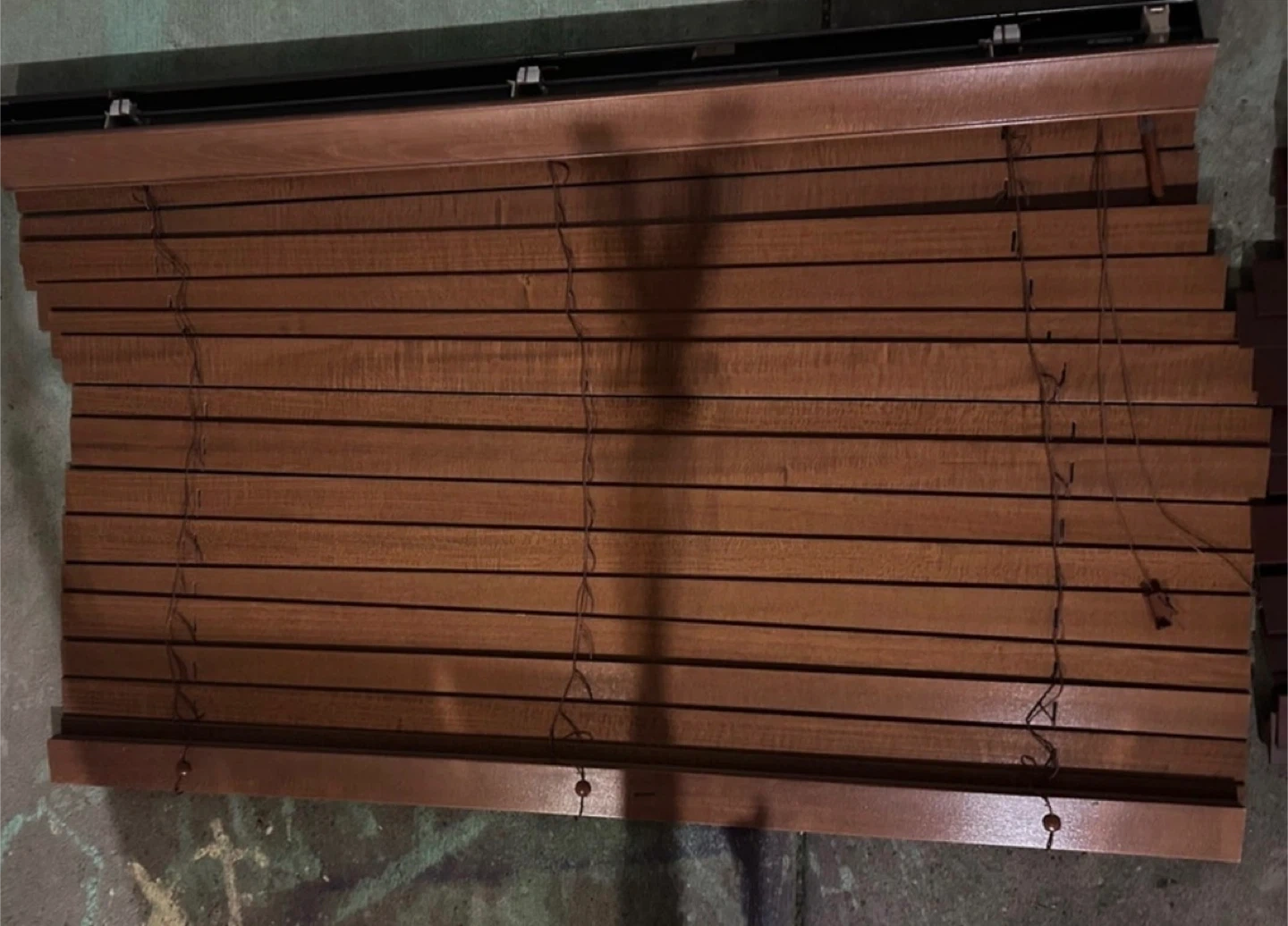 These Hunter Douglas blinds come in a light brown and a darker brown.