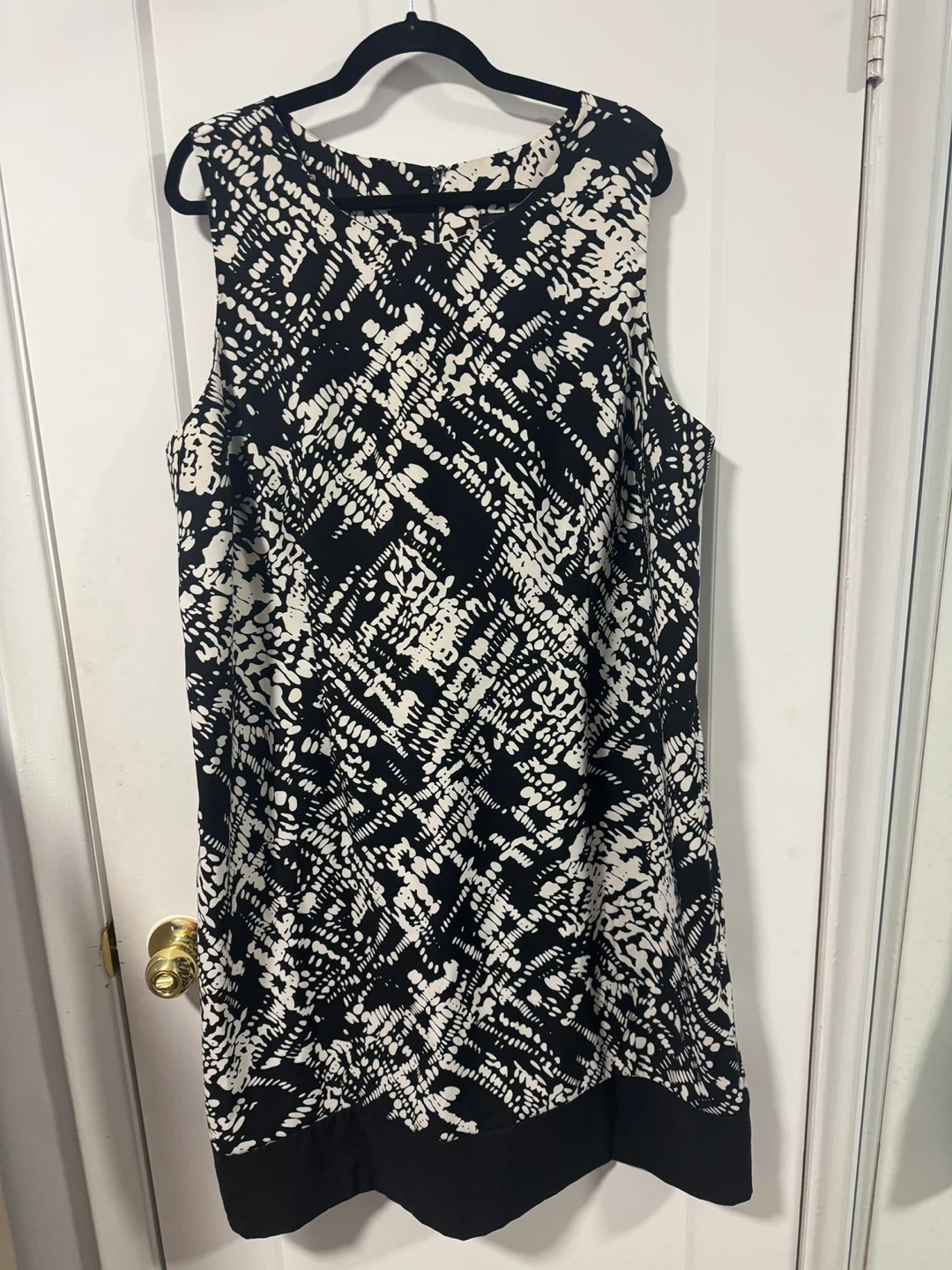Selling a Penningtons sleeveless dress in size 22W! It features a black and white pattern. Perfect for a casual or dressy occasion