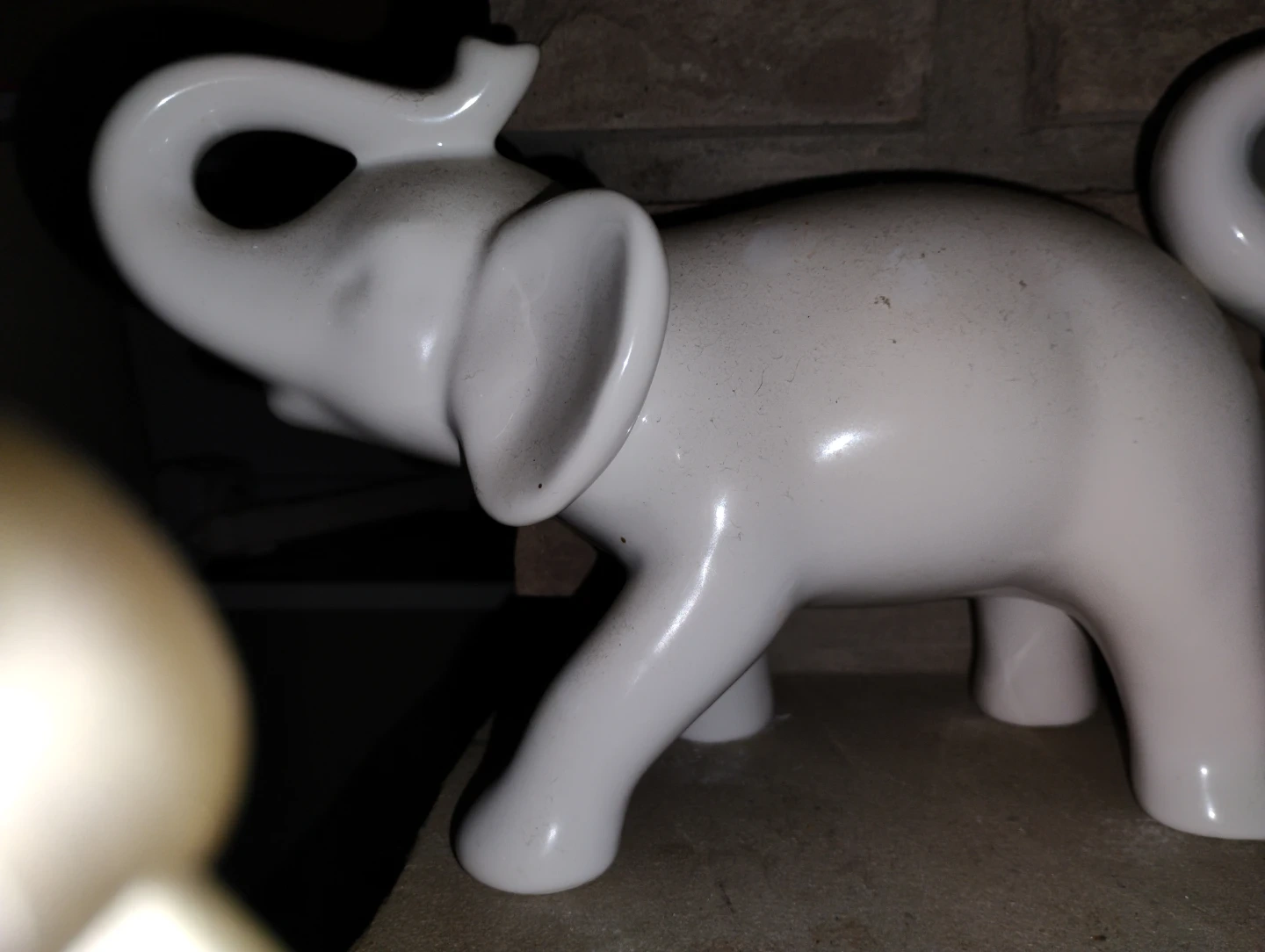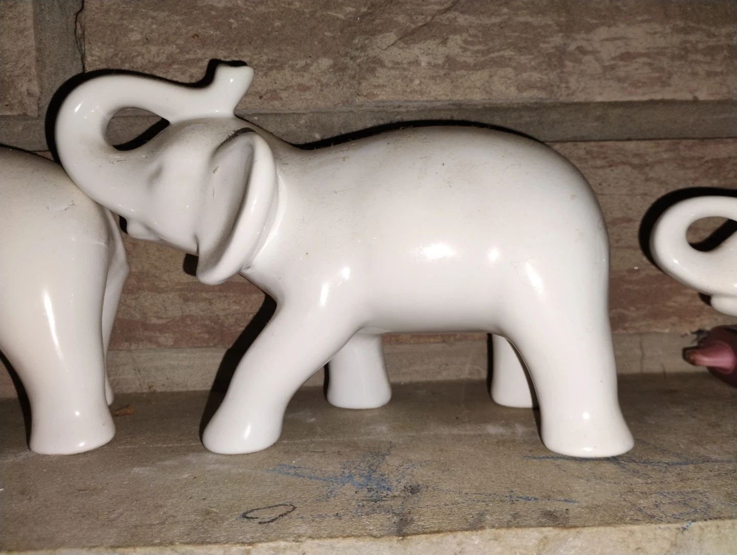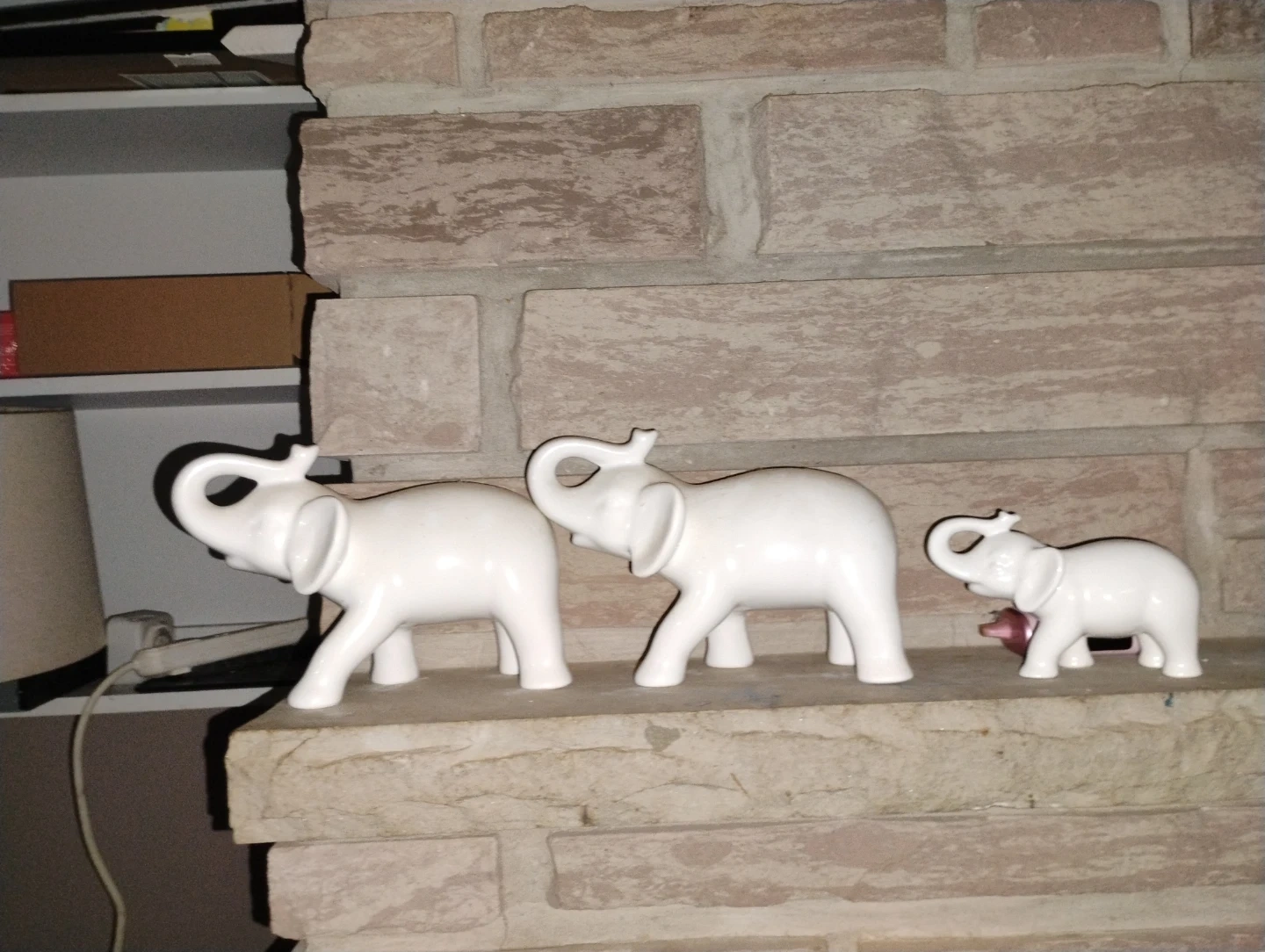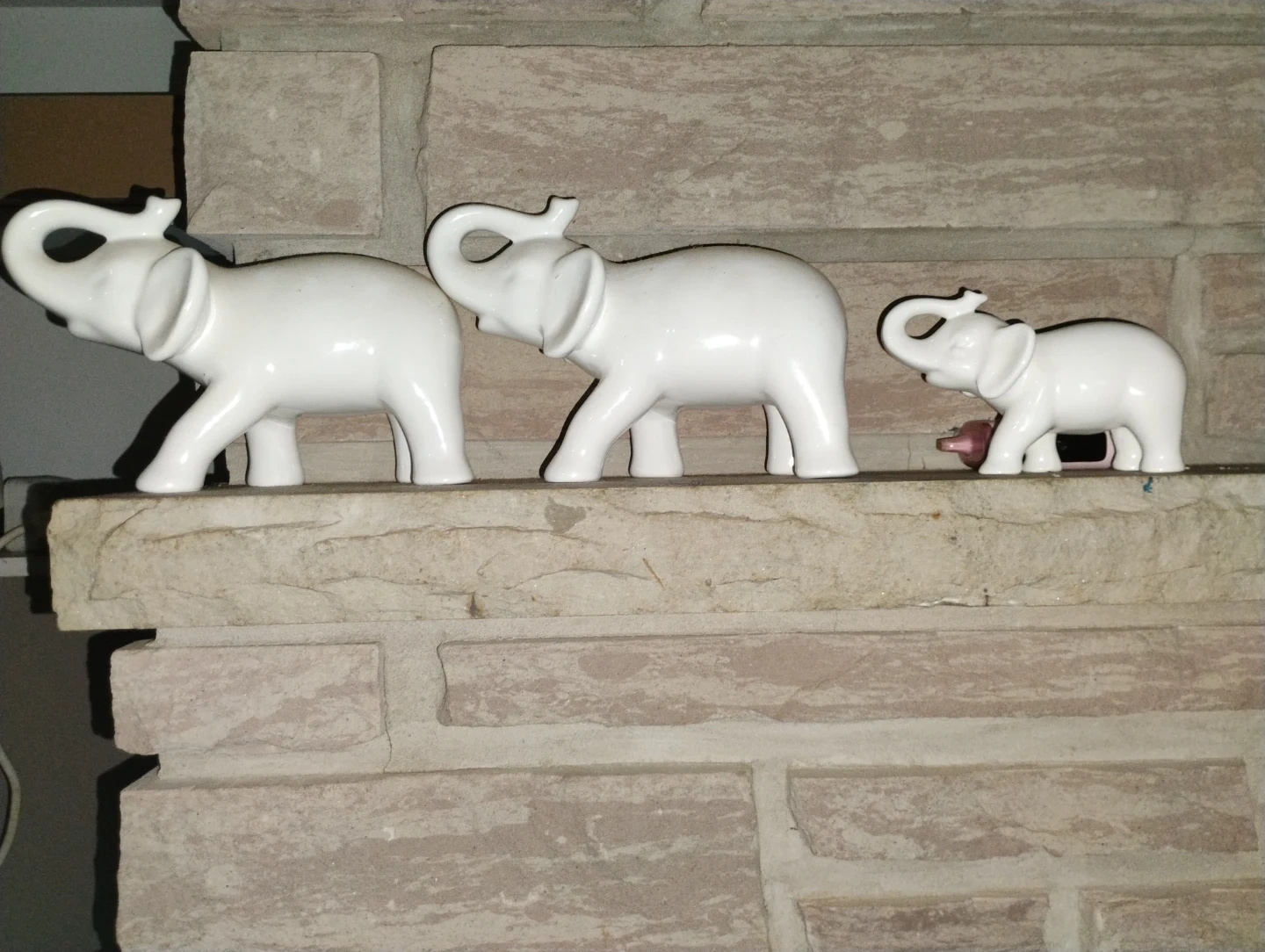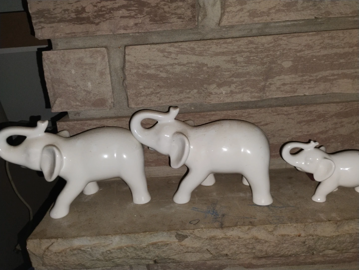 Here's a set of three adorable elephant figurines! They're all in a lovely white colour and would look great on a shelf or mantelpiece