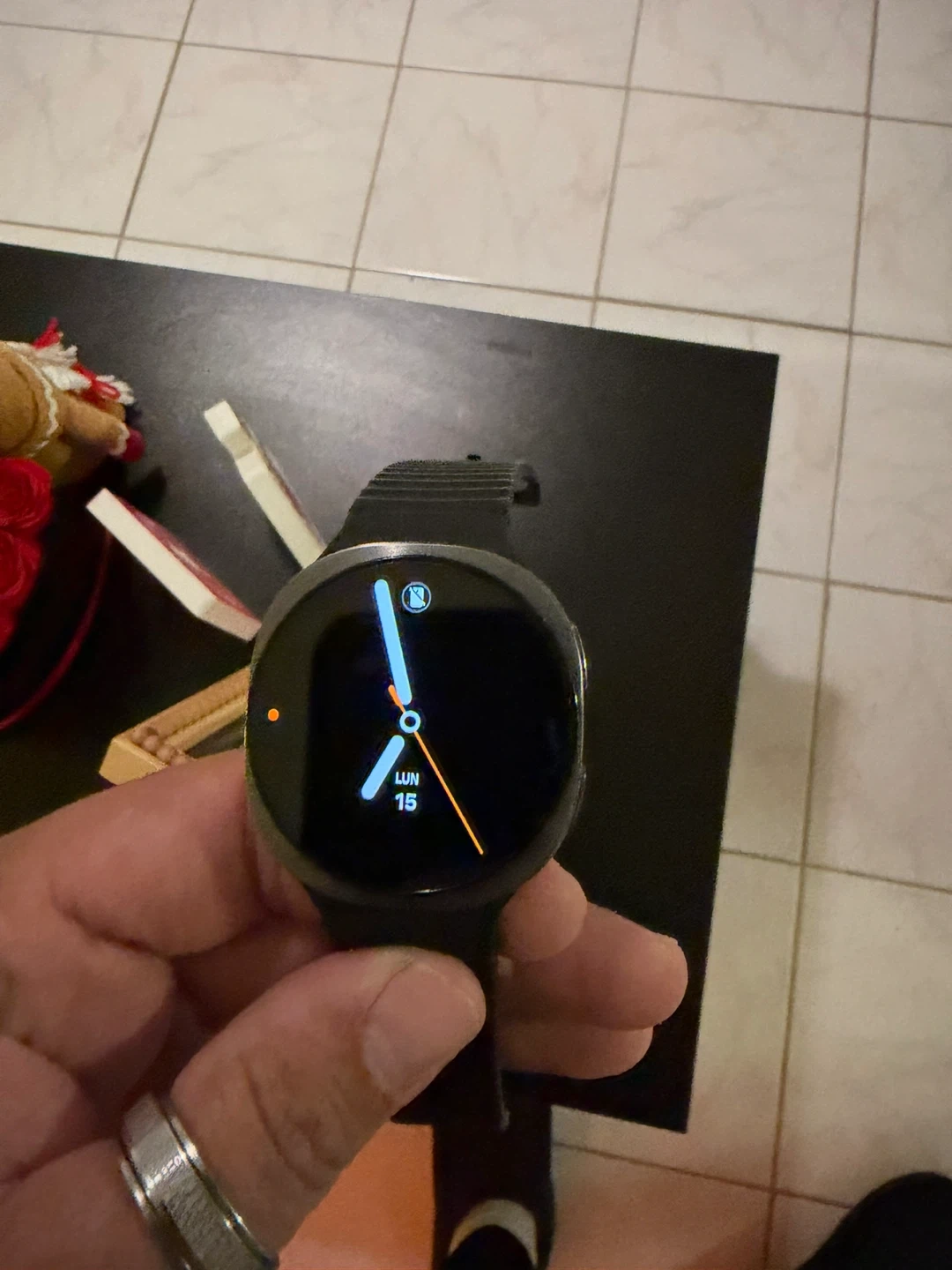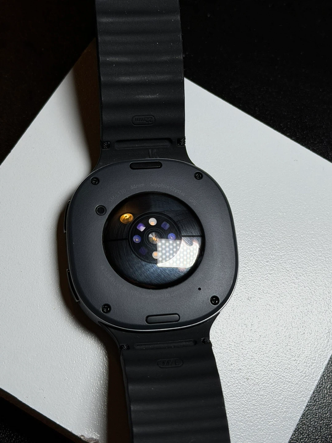 Selling a Samsung Galaxy Watch. It's in good condition and ready for a new owner. The watch band is black. The size is 44mm