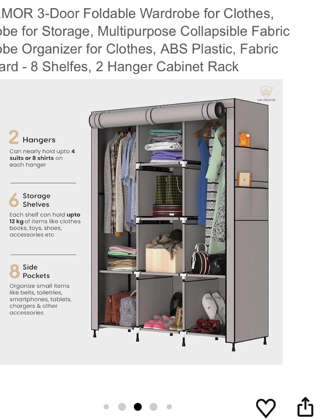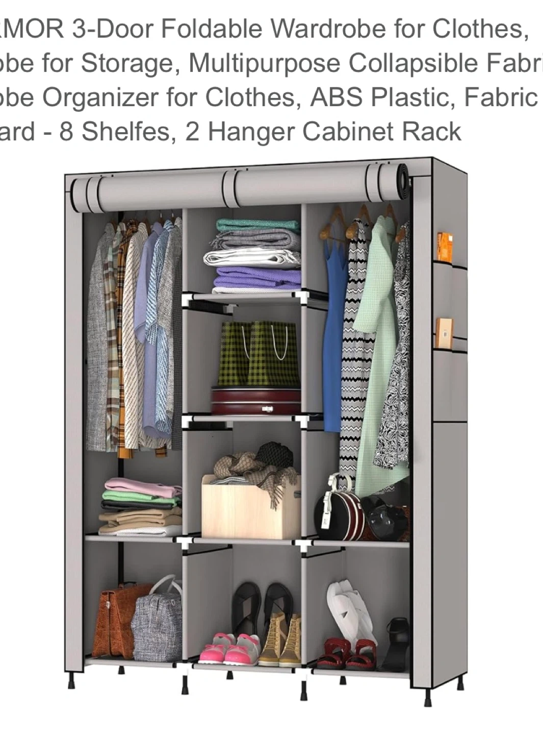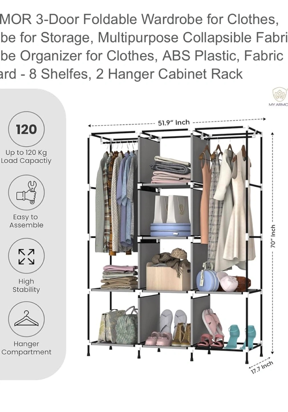 Looking to organize your clothes and accessories? This MY ARMOR 3-door foldable wardrobe is just what you need! It features: