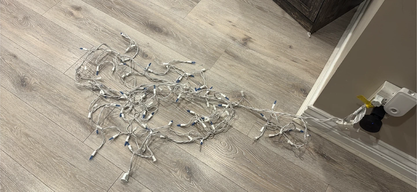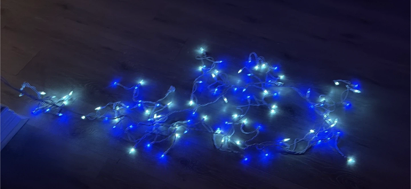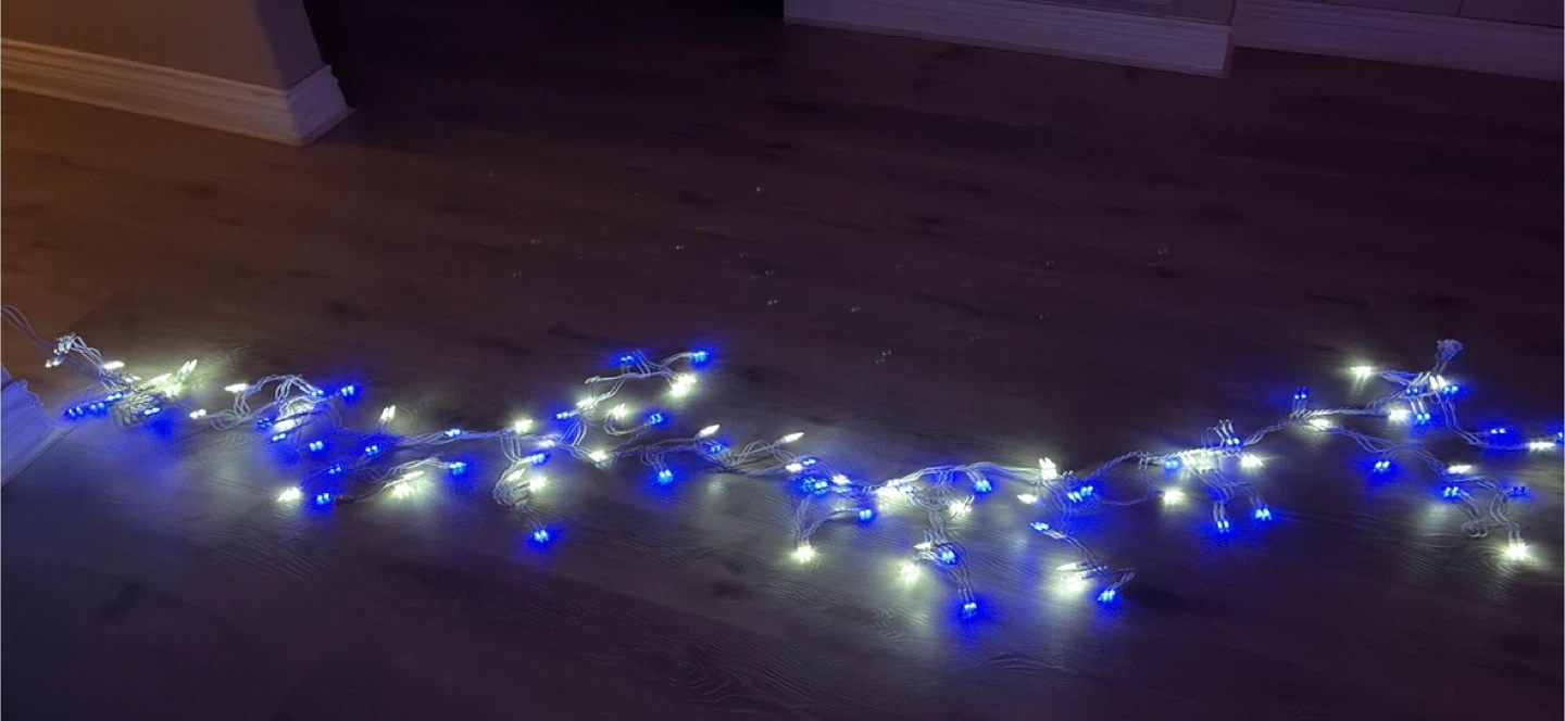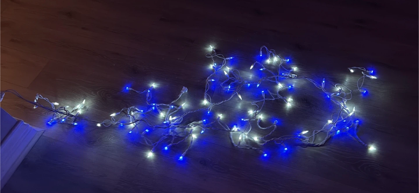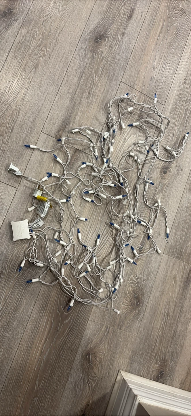 Selling a string of blue and white Christmas lights! They're in good condition and ready to brighten up your holiday season