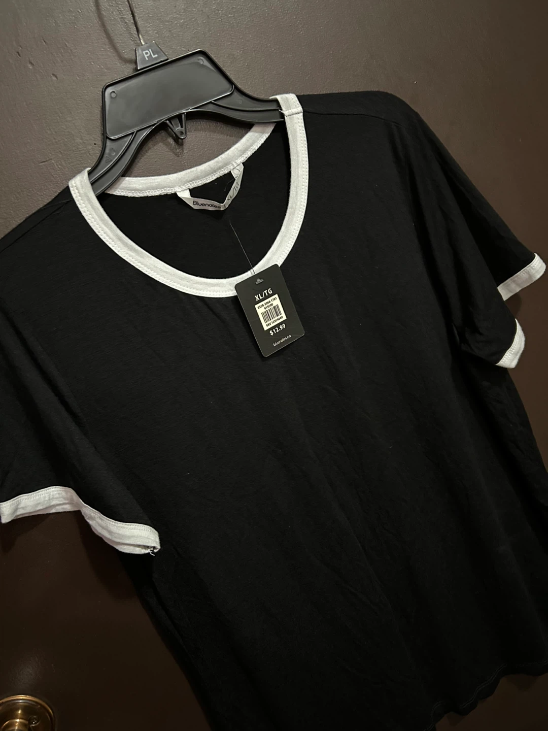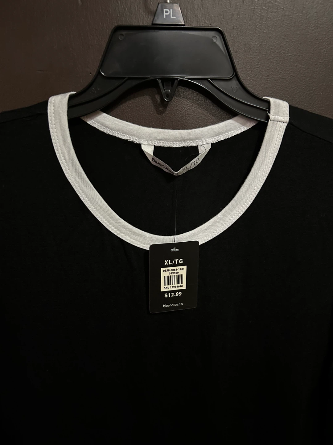 I'm selling a brand new Bluenotes ringer t-shirt! It's black with white trim and a classic ringer style. The size is XL/TG. The original price tag is still attached, reg price $13.00 plus tax!