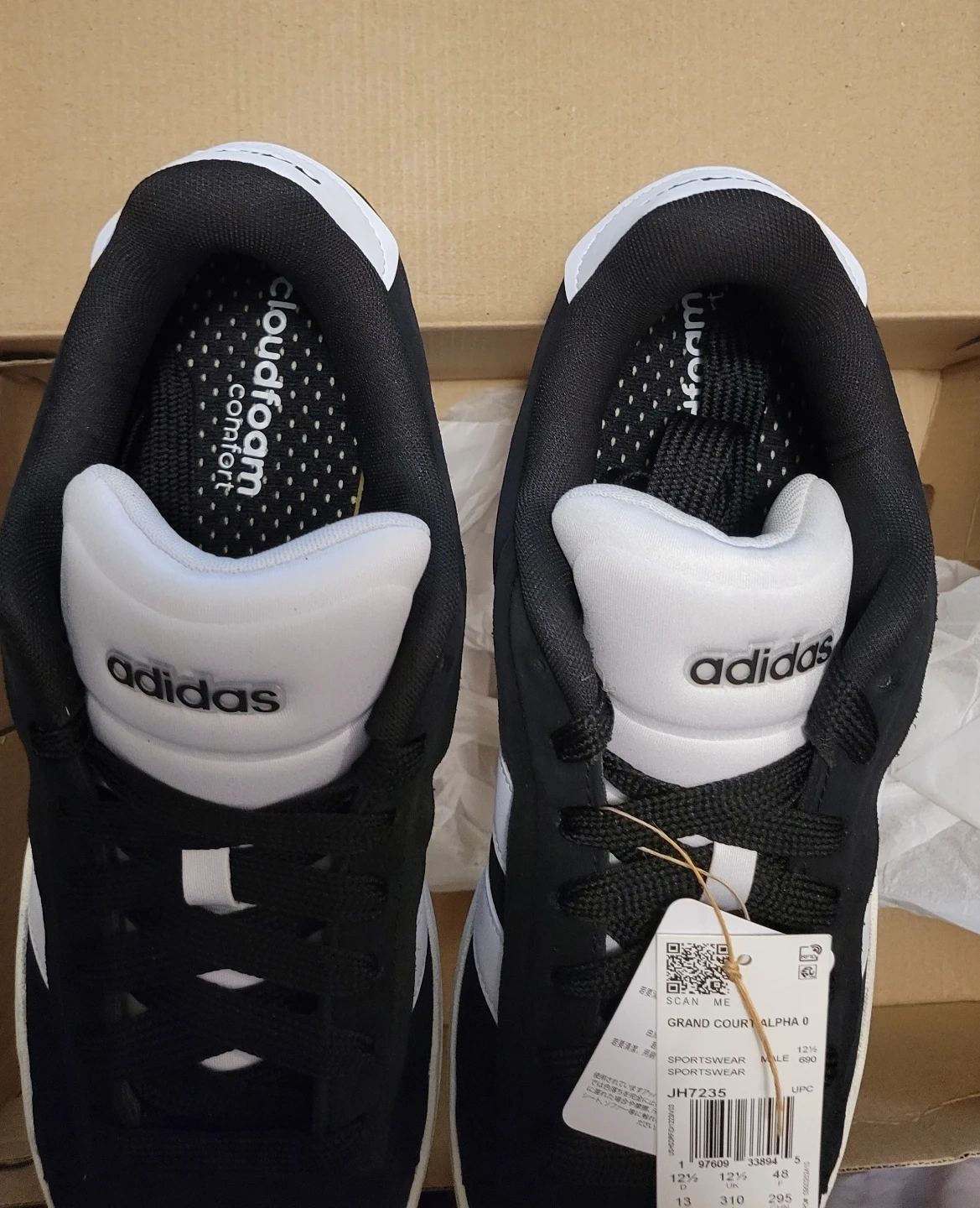 These Adidas Grand Court Alpha shoes are brand new and ready for a new adventure! They come in size 13 and feature a classic black and white design. The shoes also have cloudfoam comfort.