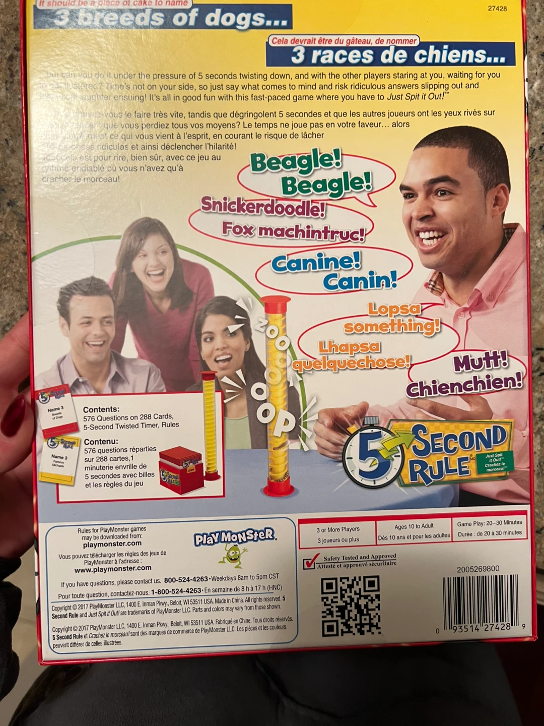 1 / 31 / 3Buy & Sell5 Second Rule Game5 Second Rule Game$8Selling a PlayMonster 5 Second Rule game! It's a fast-paced game where you have to Just Spit it Out! Suitable for ages 10 to adult and for 3 or more playersConditionNewWHERE TO MEET1500 Royal York RdView MapSELLERverifiedAnnaliseWestmount1367 reviews1 chats·0 favorites·11 viewsSEND CHAT TO SELLERHi Annalise! I’m interested in your listing.Hi Annalise! I’m interested in your listing.Get the Karrot app to chatSign In to chat